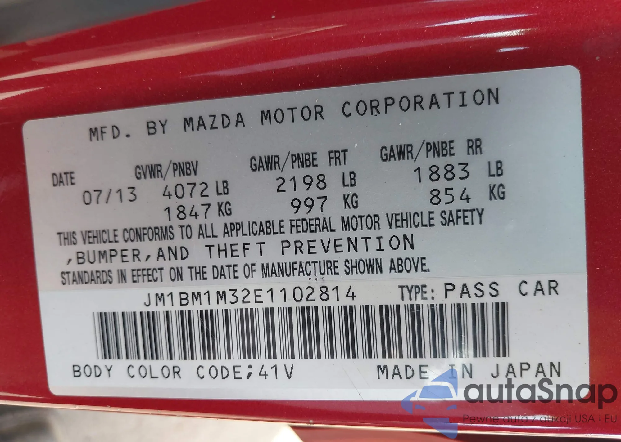 LOT: 43198215 VIN: JM1BM1M32E1102814