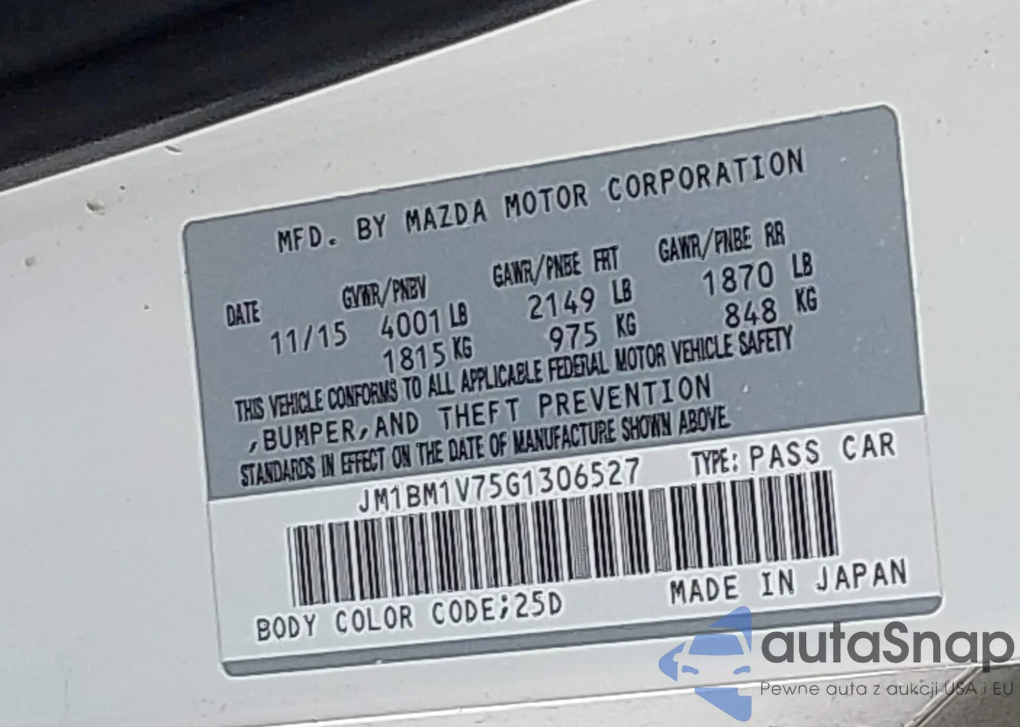 • VIN JM1BM1V75G1306527