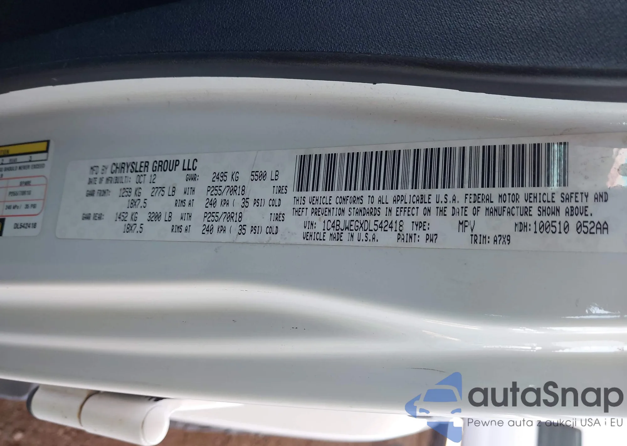 • VIN 1C4BJWEGXDL542418