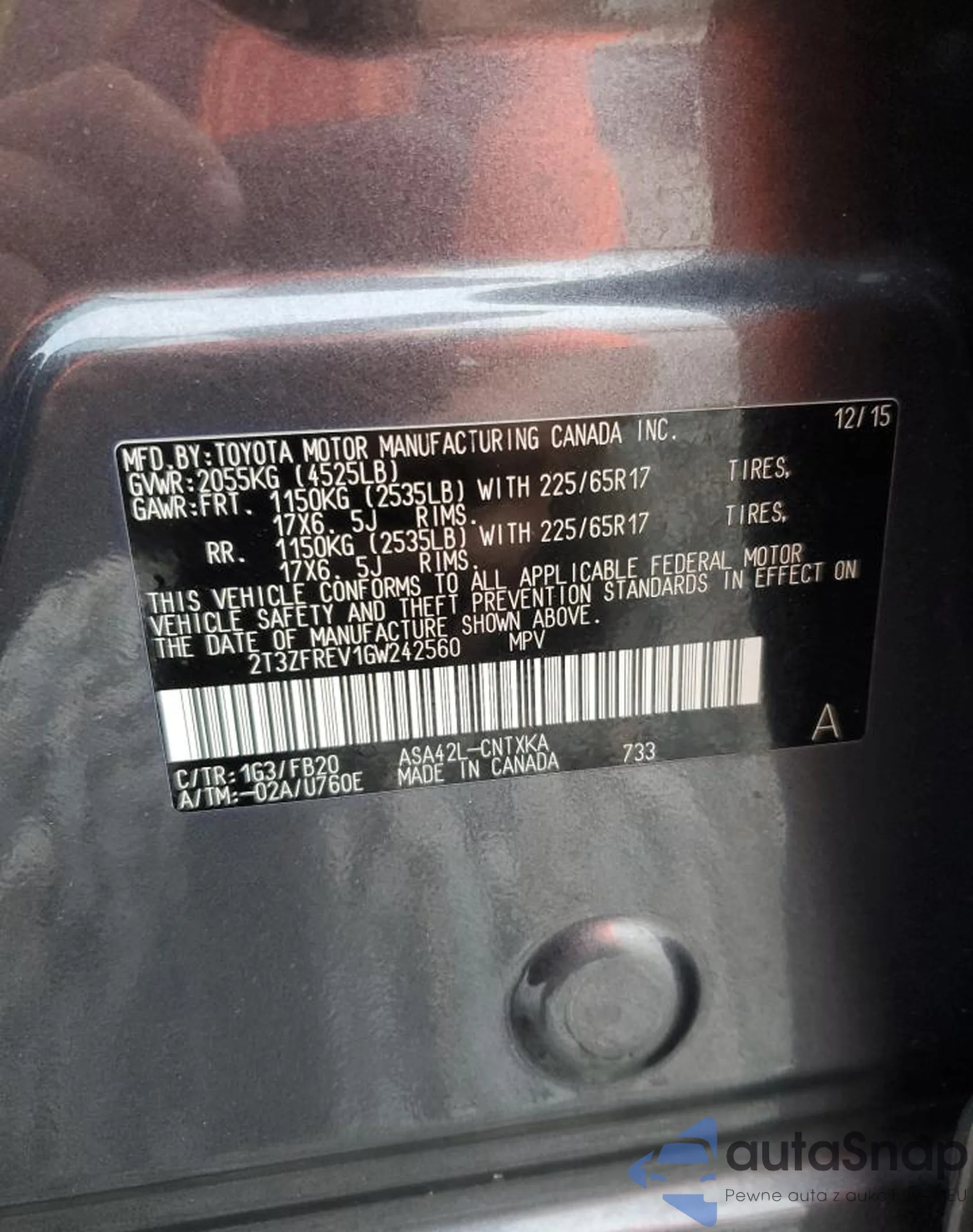 • VIN 2T3ZFREV1GW242560