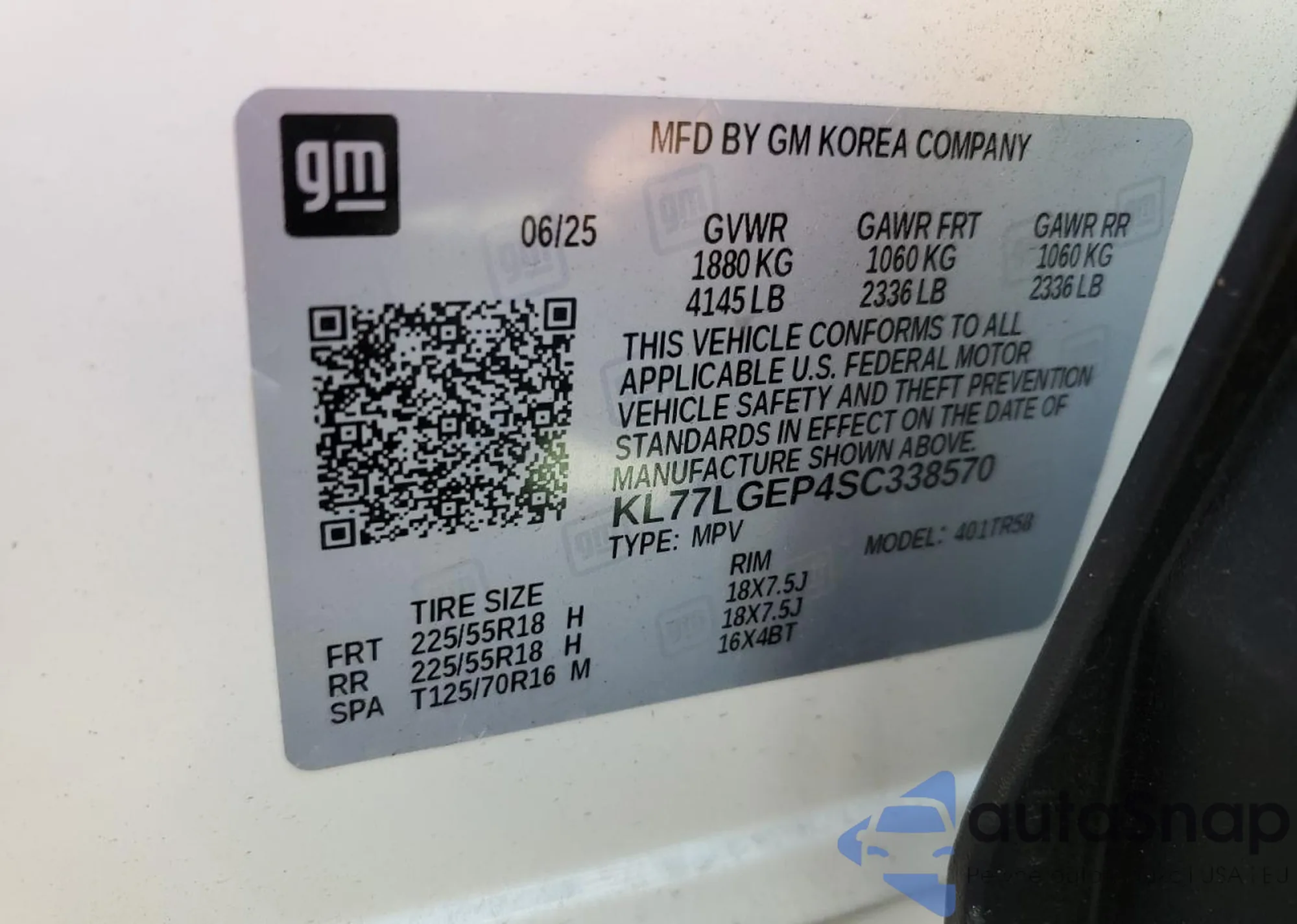• VIN KL77LGEP4SC338570