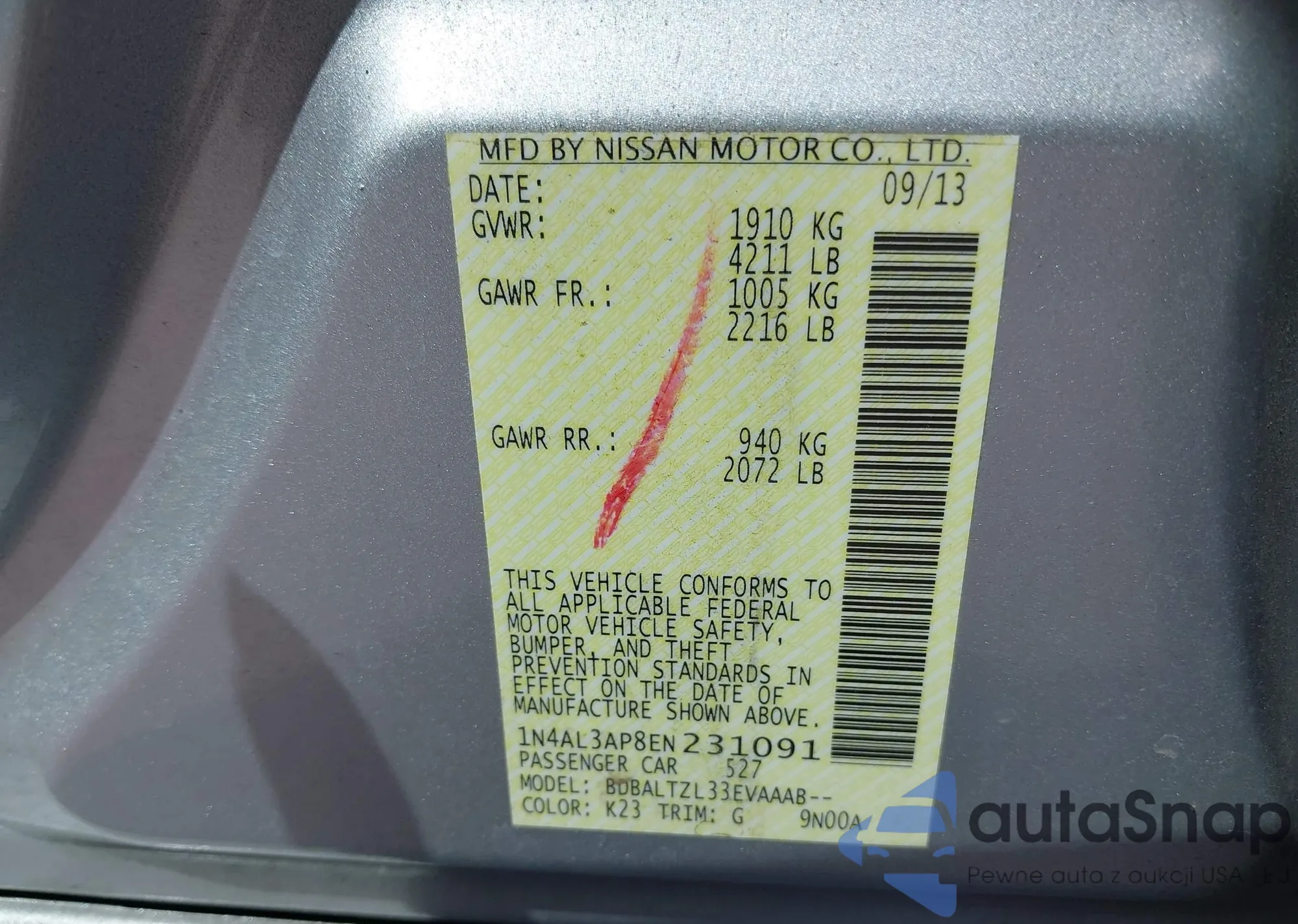 LOT: 43460176 VIN: 3N1BC13E58L378247