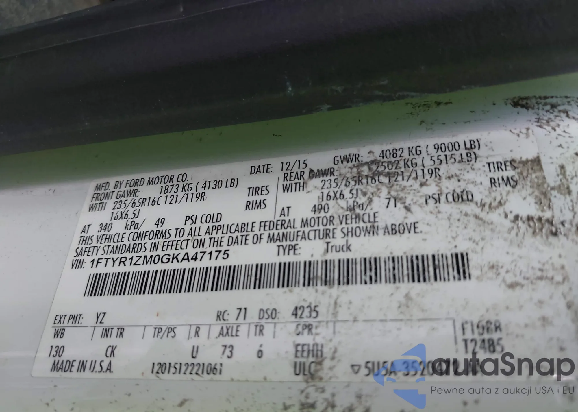 • VIN 1FTYR1ZM0GKA47175