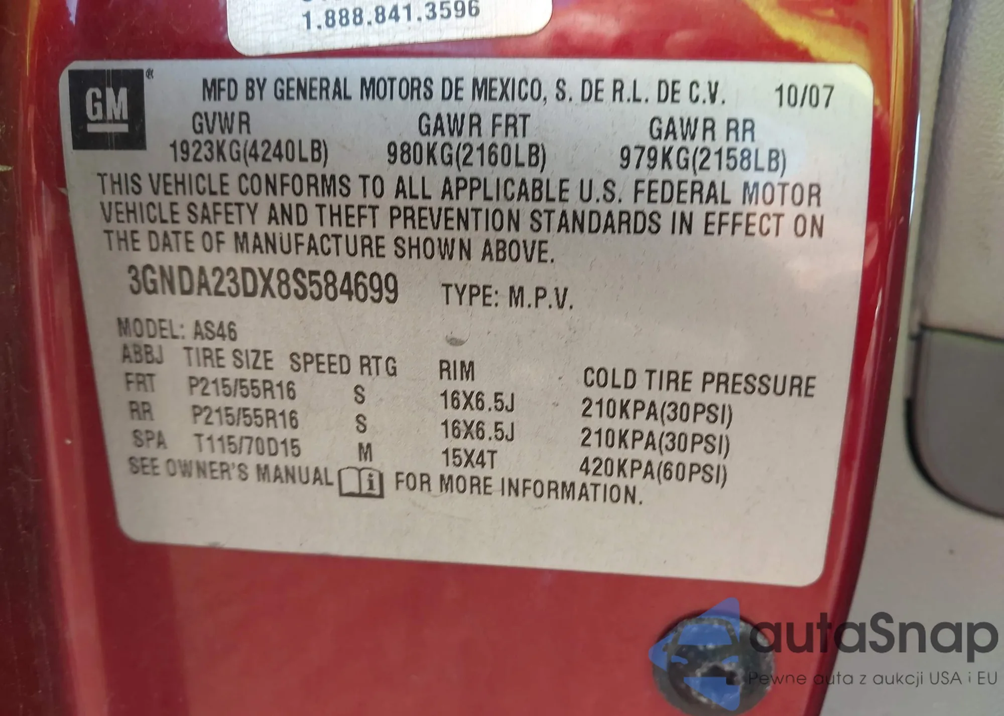 • VIN 3GNDA23DX8S584699