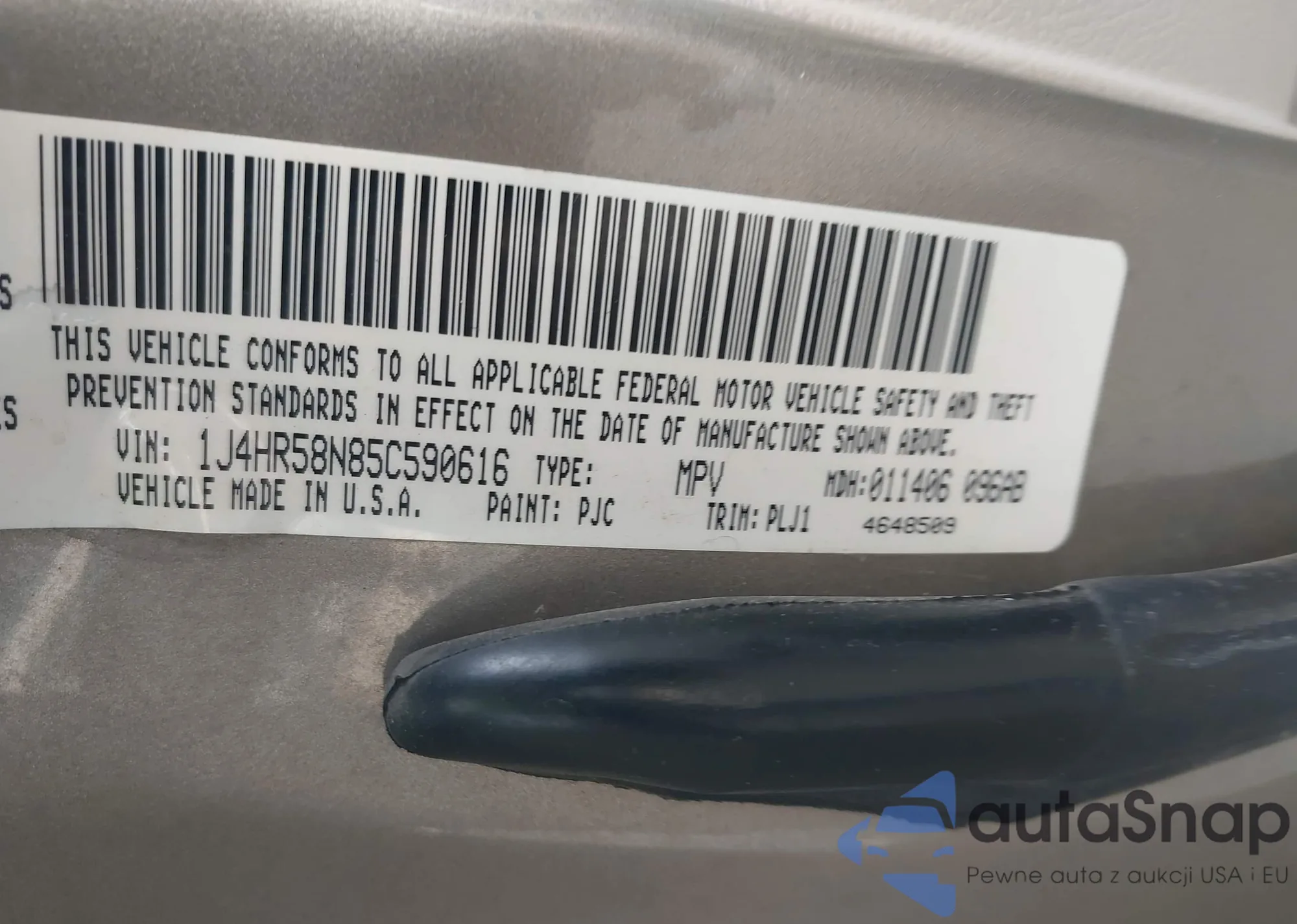 LOT: 43565901 VIN: 1J4HR58N85C590616