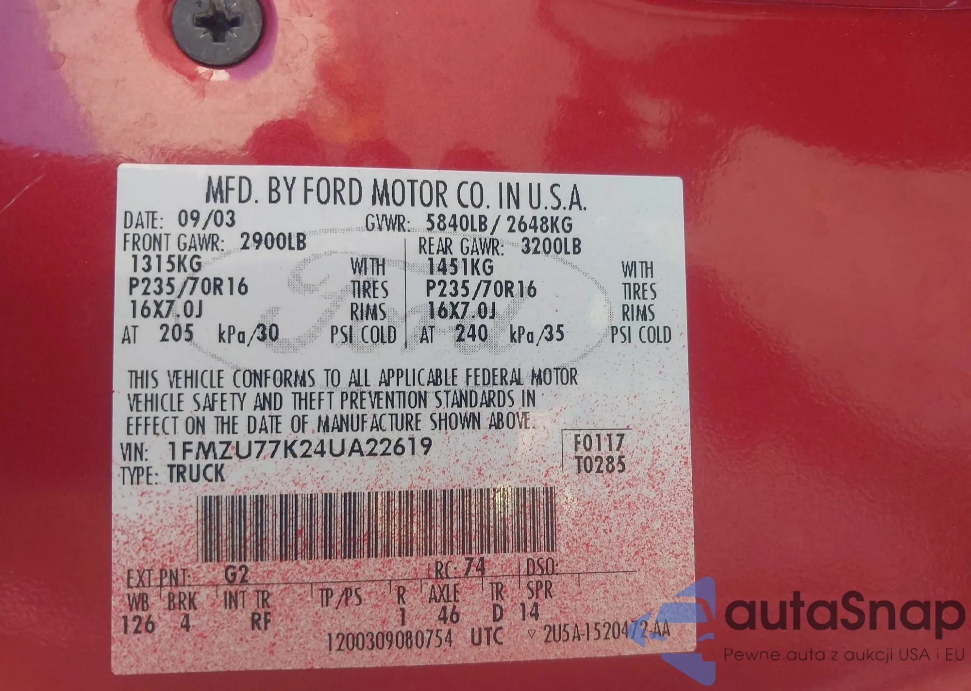 • VIN 1FMZU77K24UA22619