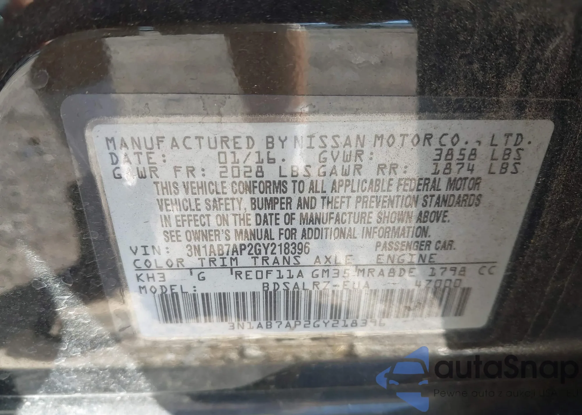 • VIN 3N1AB7AP2GY218396