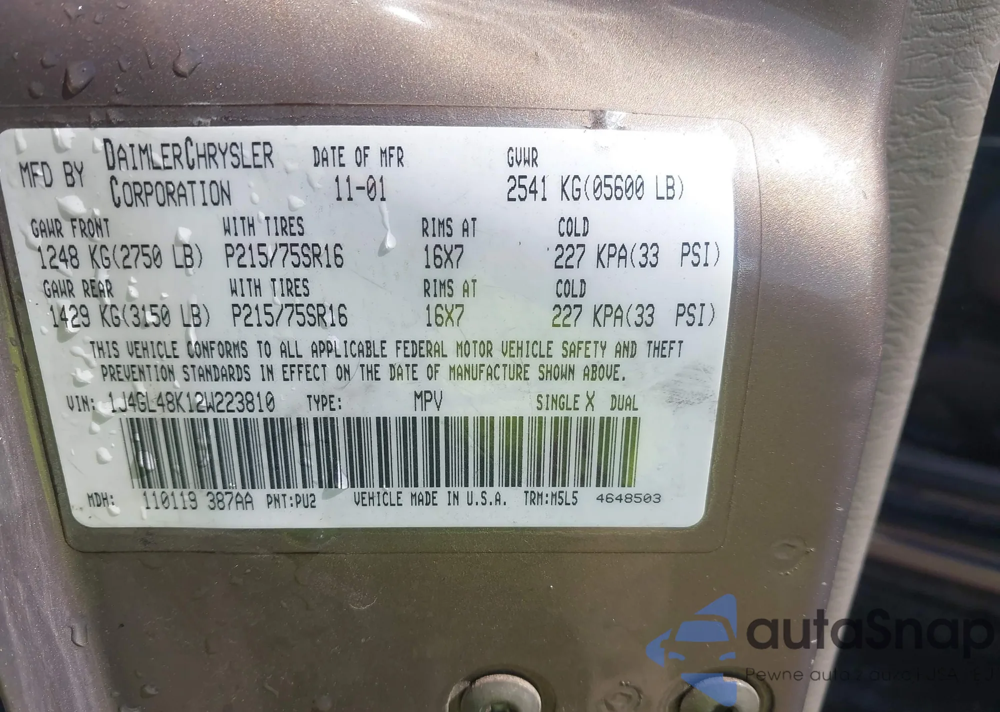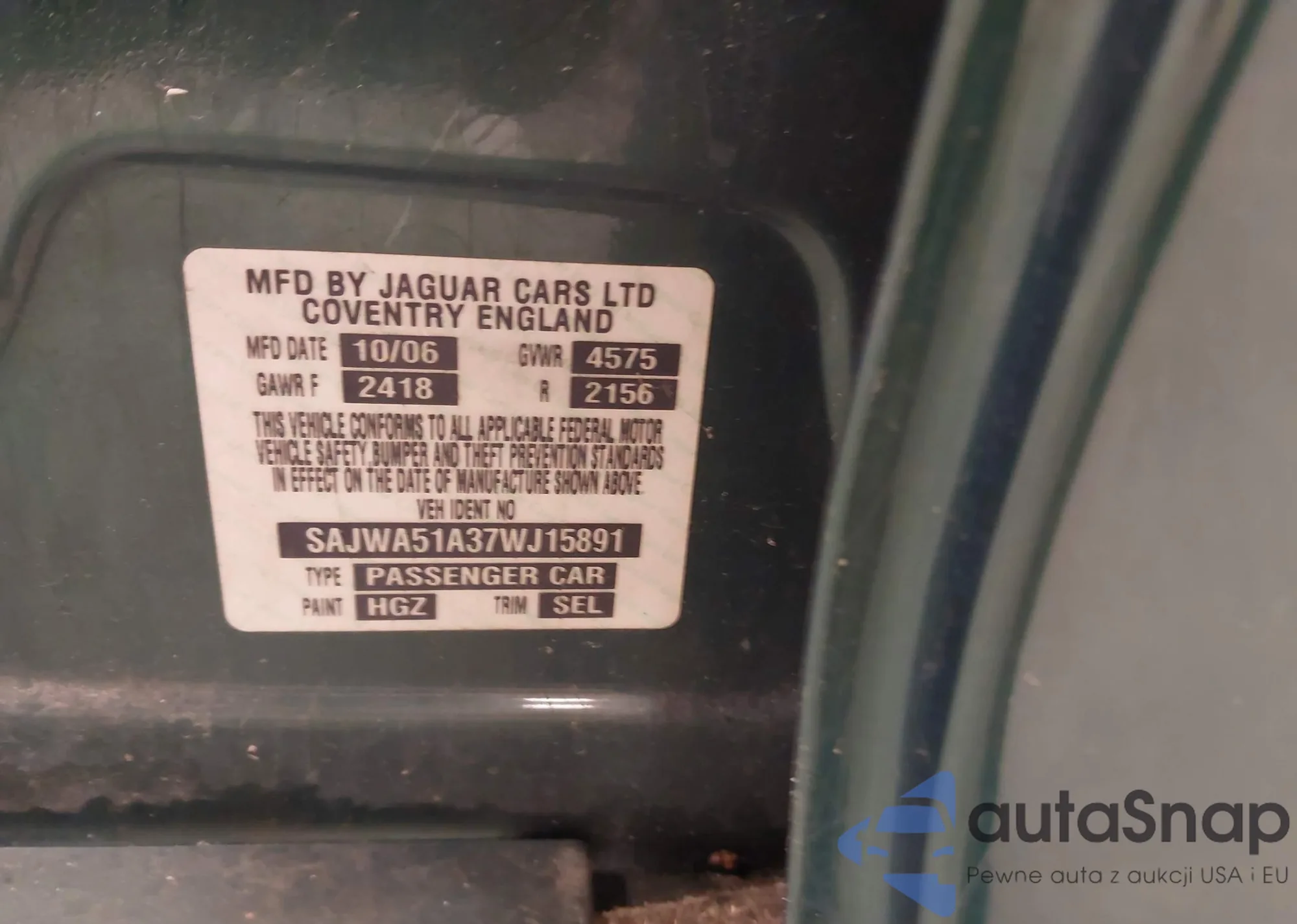 • VIN SAJWA01A66FN58618