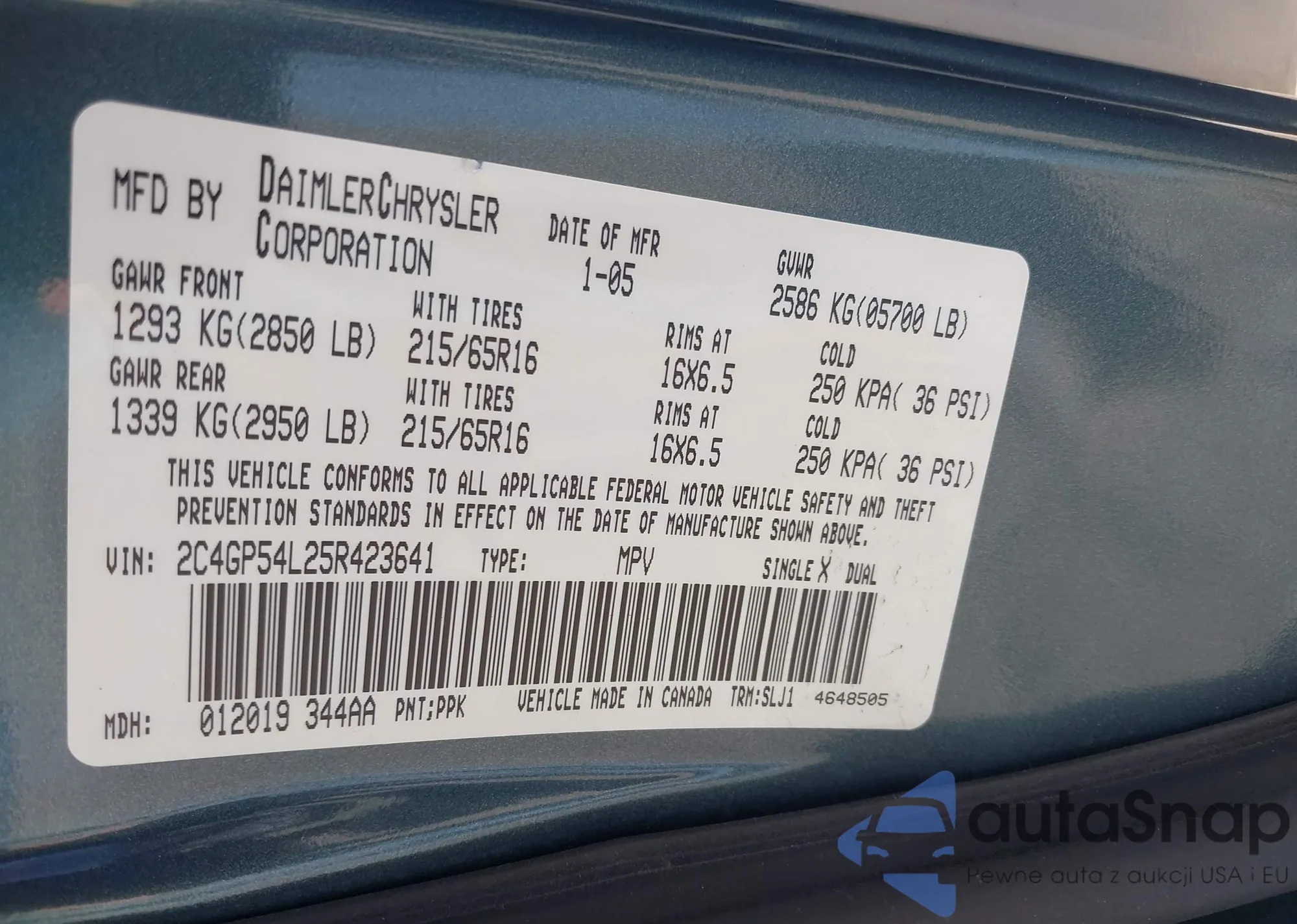 • VIN 2C4GP54L25R423641