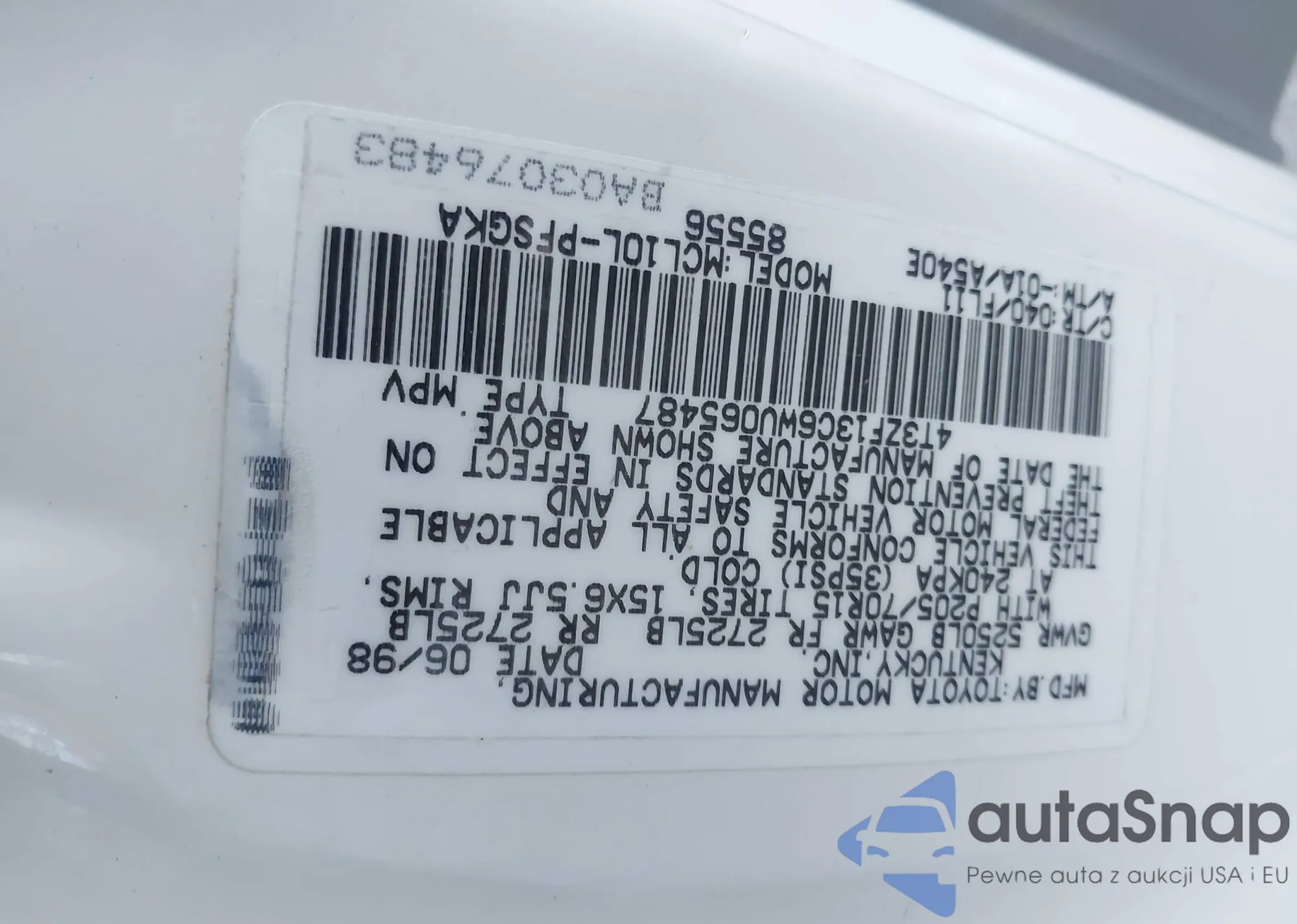 • VIN 4T3ZF13C6WU065487