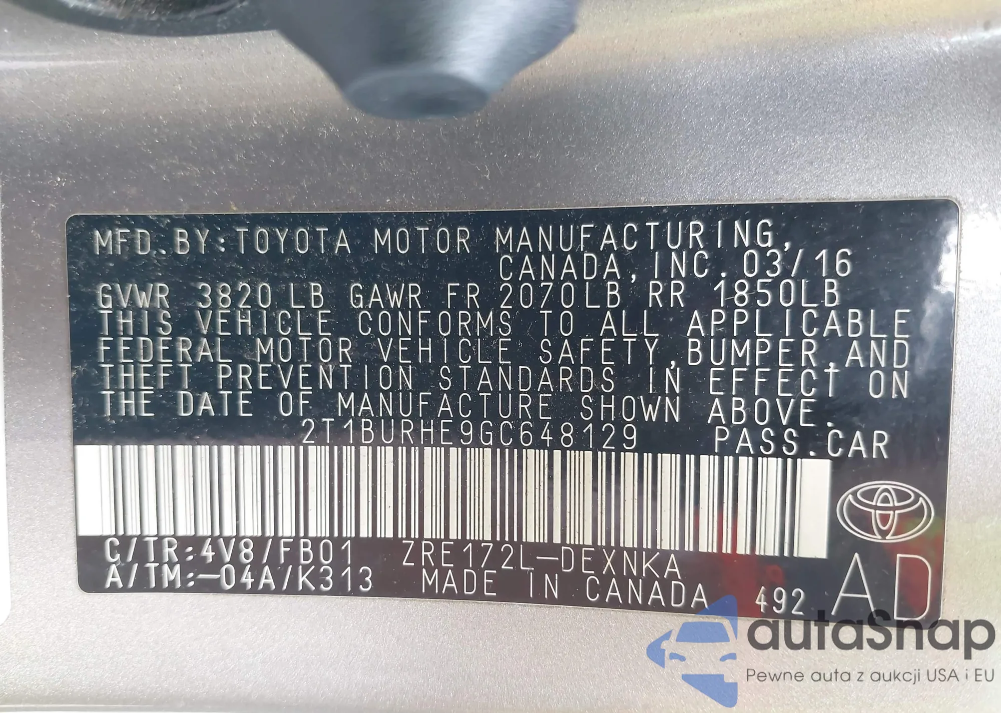 • VIN 2T3B6RFV0NW033839
