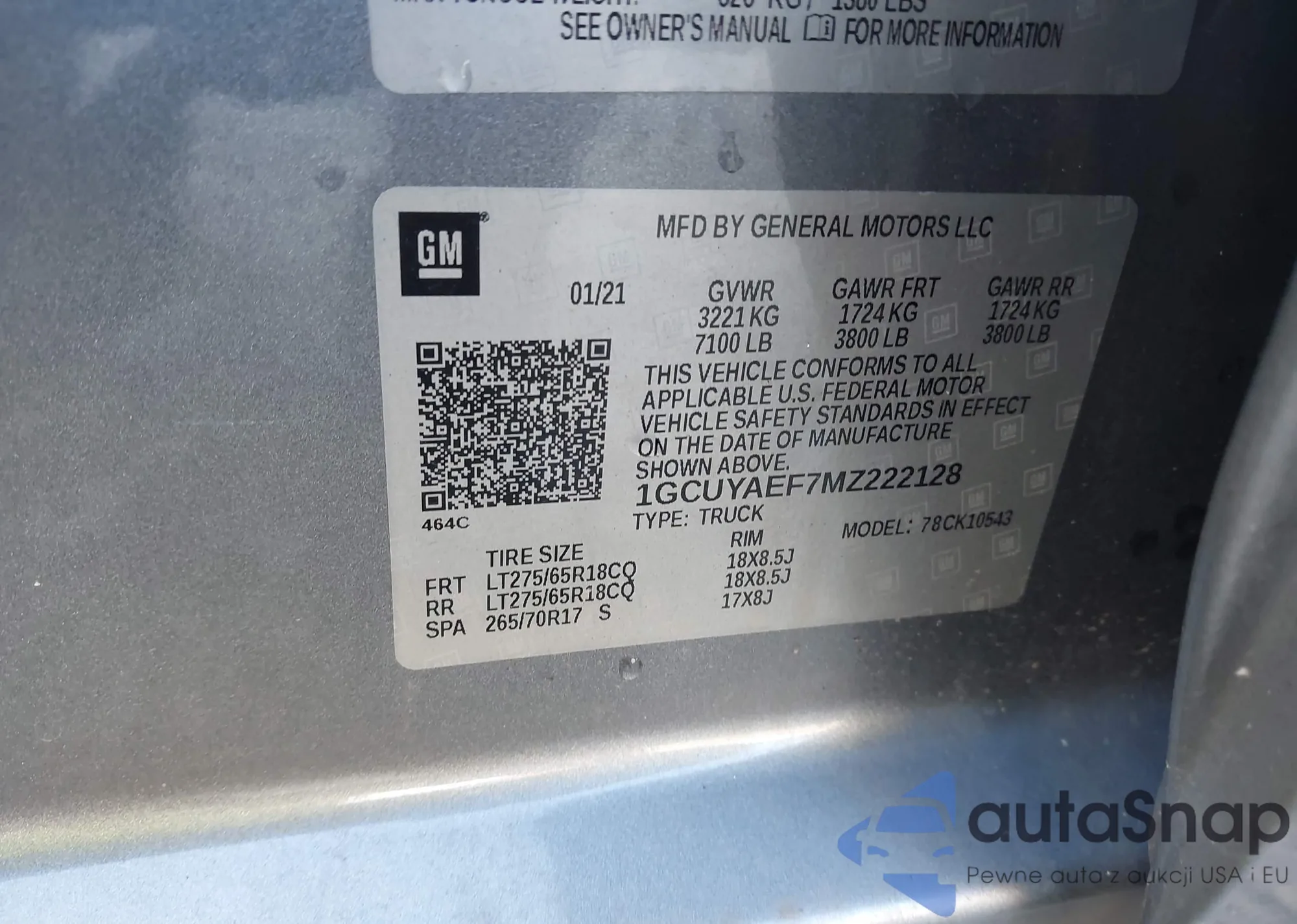 LOT: 43303339 VIN: 1GCUYAEF7MZ222128