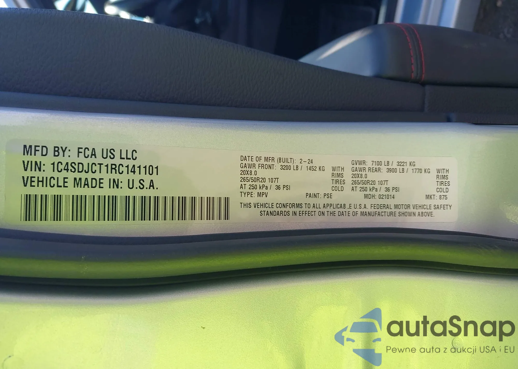 LOT: 43311190 VIN: 1C4SDJCT1RC141101