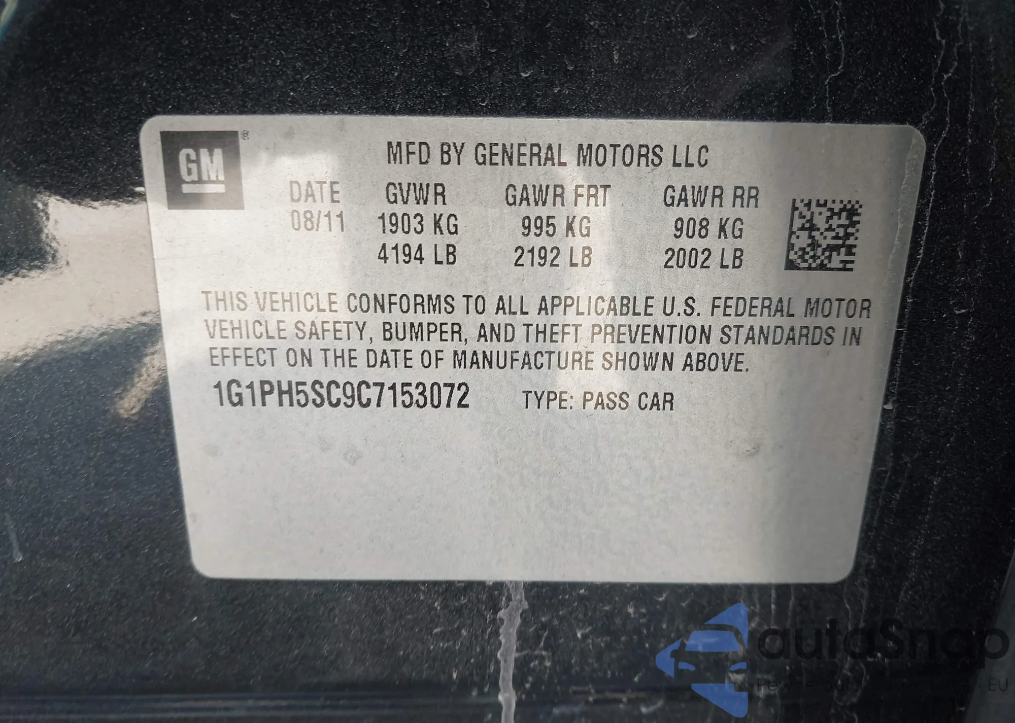 LOT: 43425732 VIN: 1G1PG5SB8F7209663