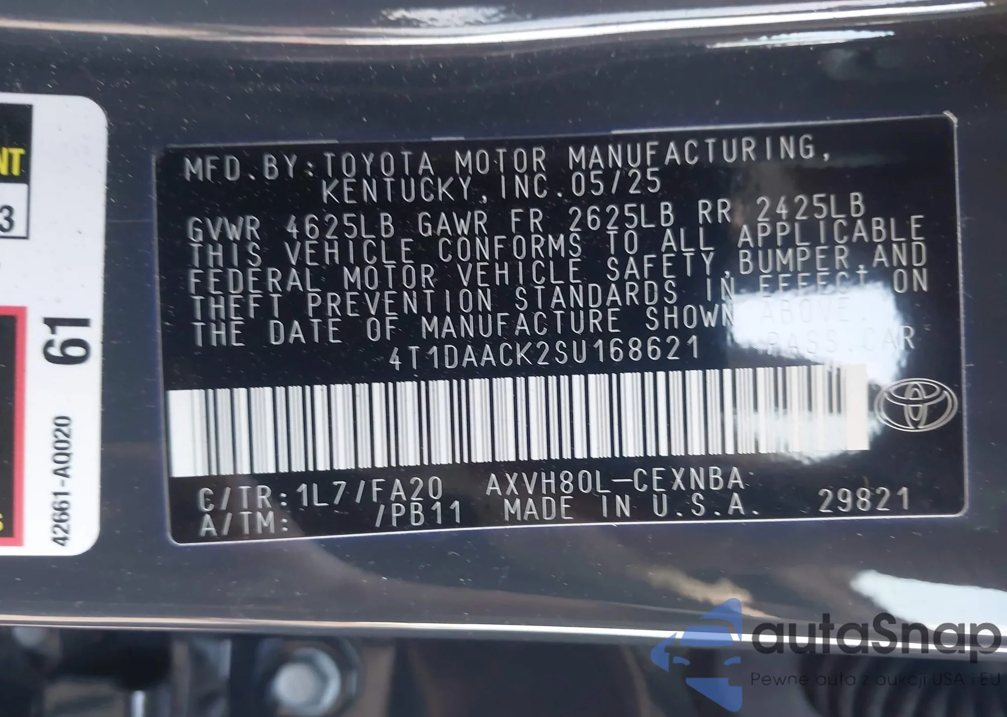LOT: 43439920 VIN: 4T1DAACK2SU168621