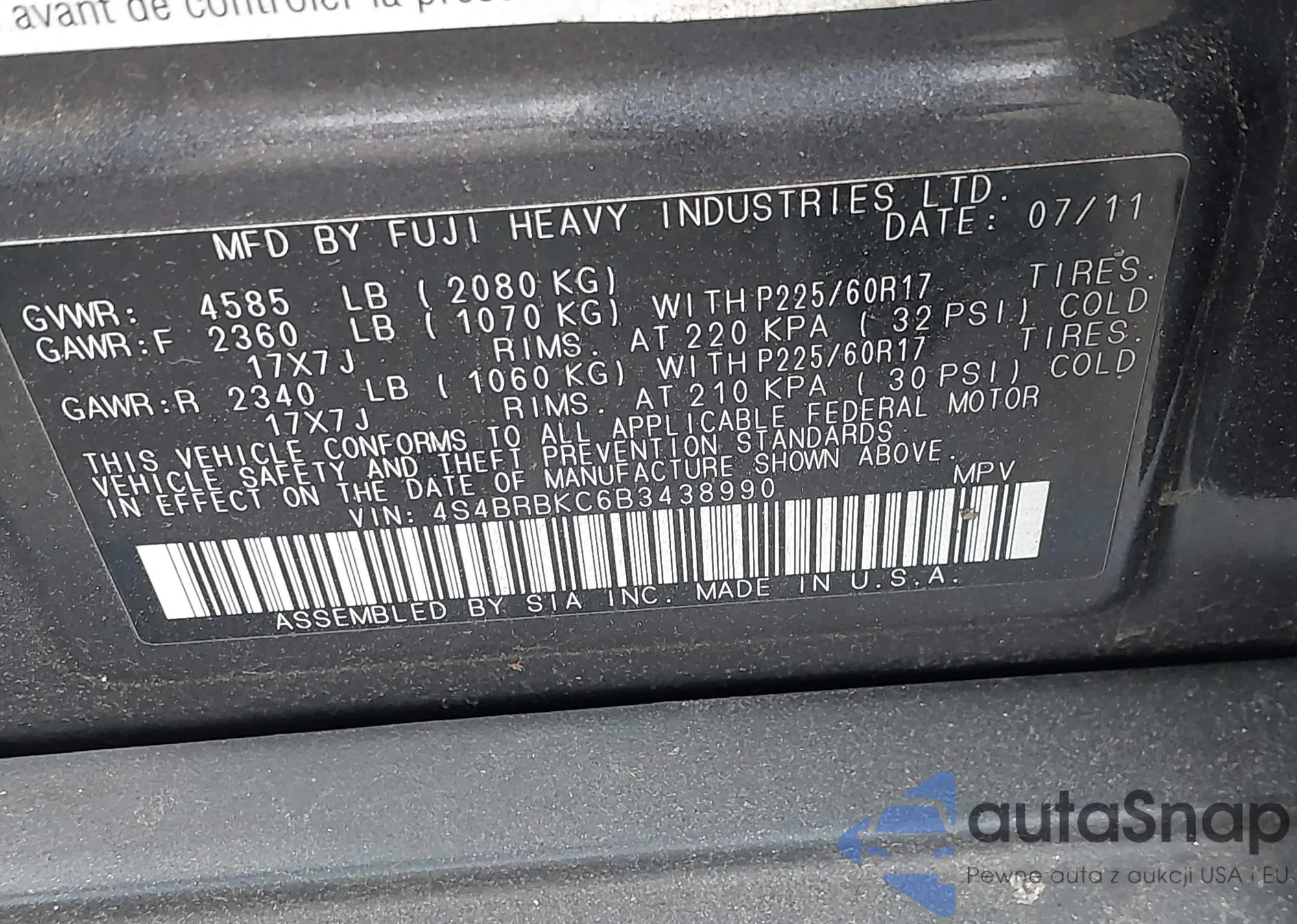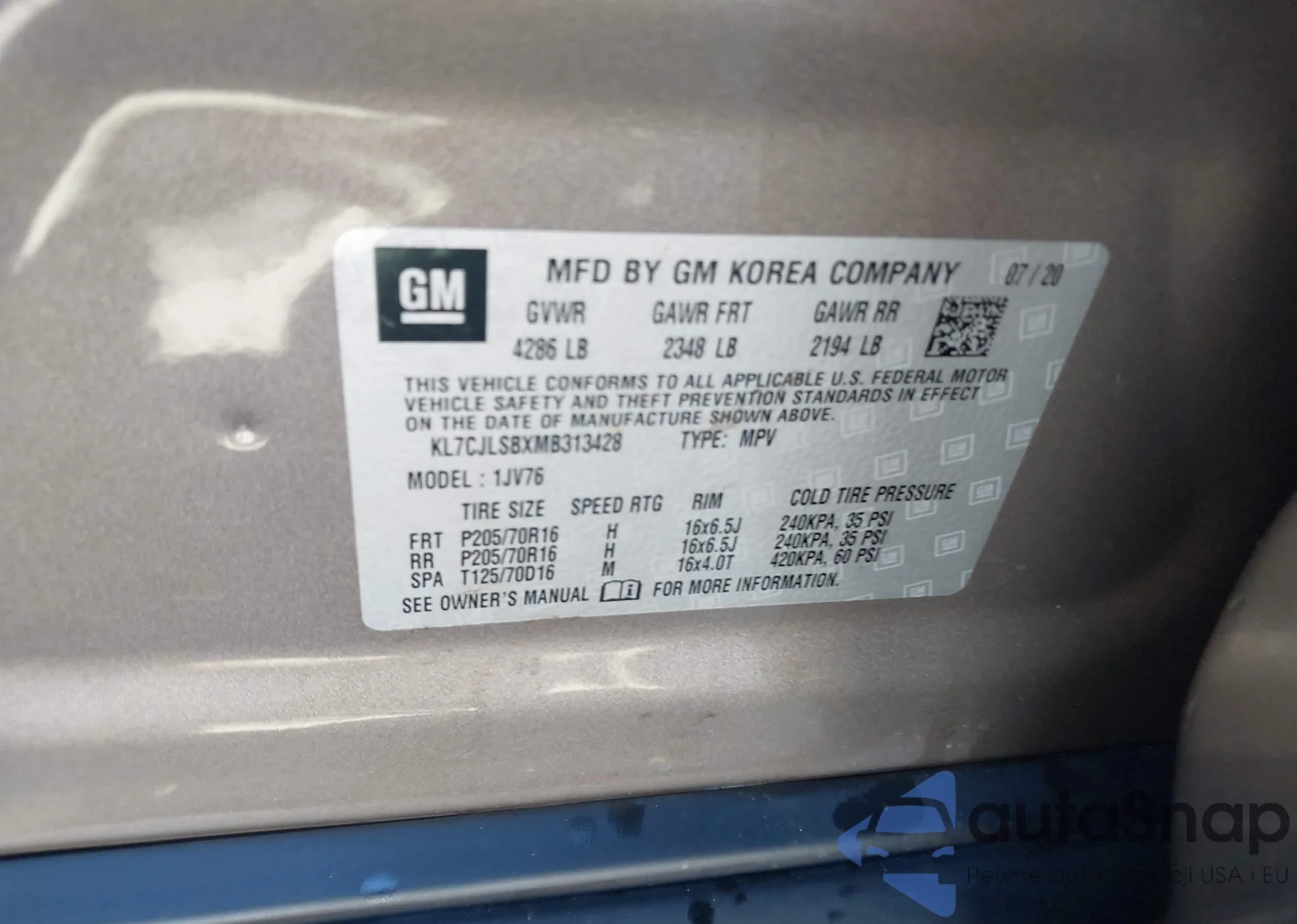 • VIN KL7CJLSBXMB313428