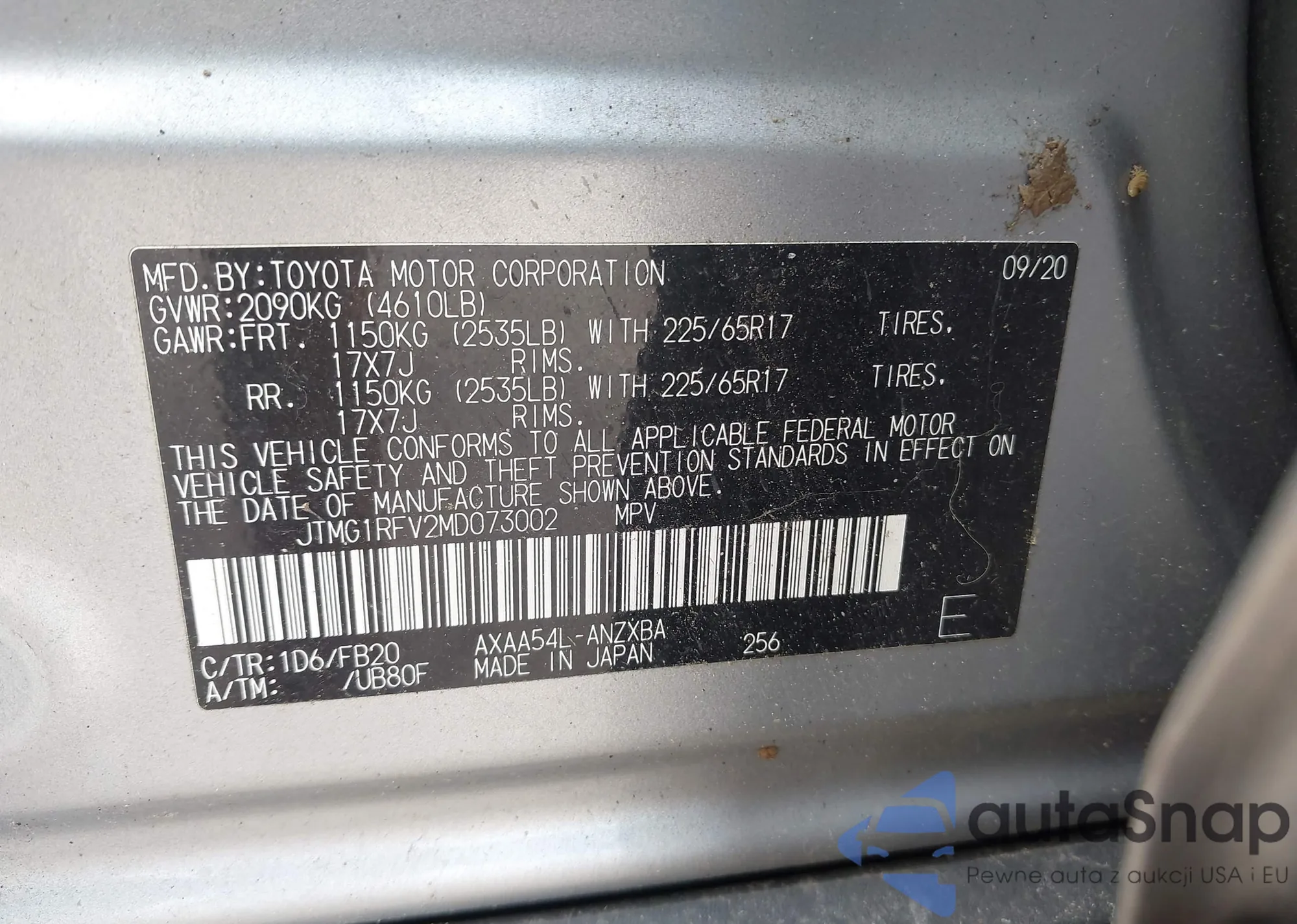 LOT: 43124336 VIN: JTMG1RFV2MD073002