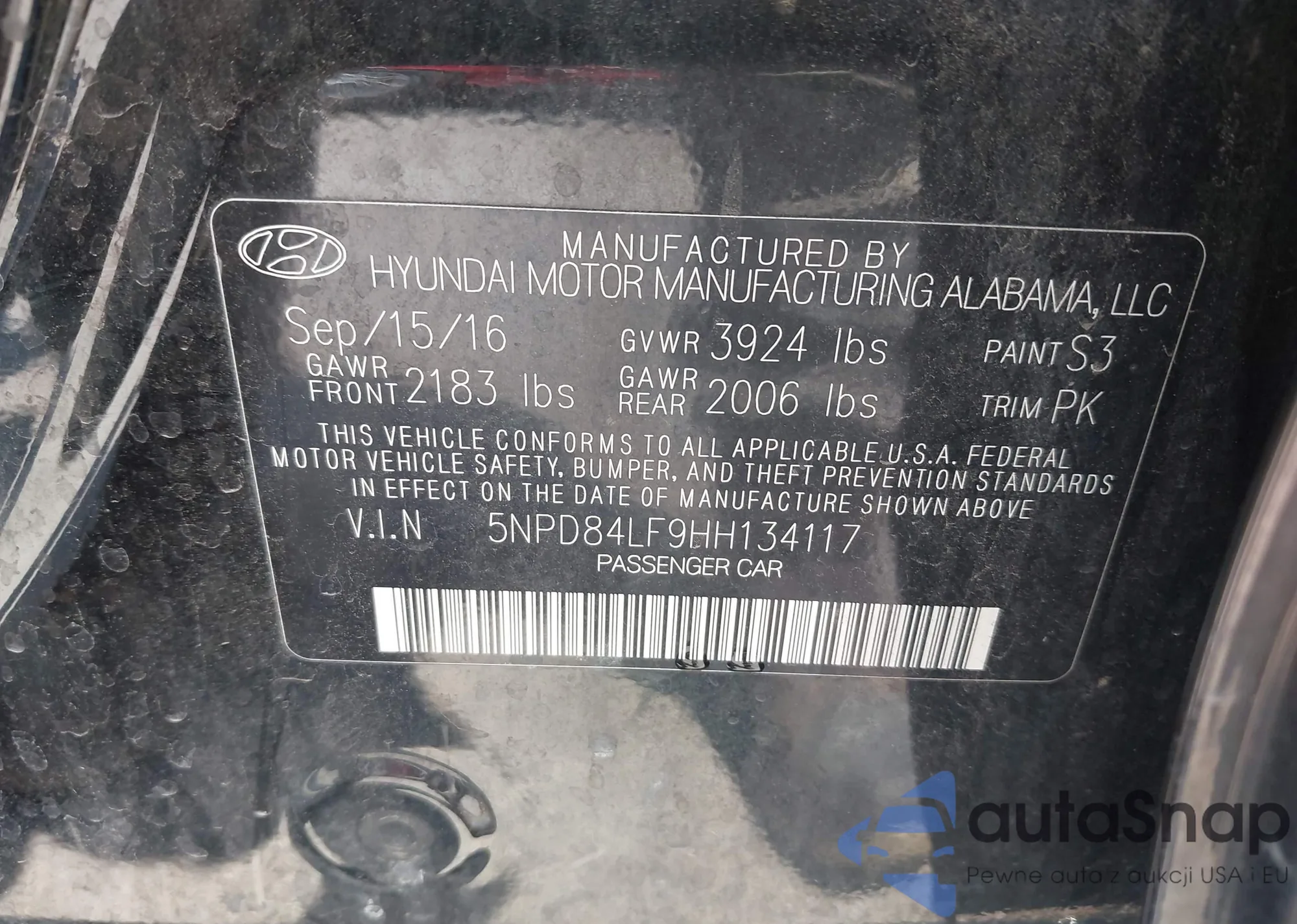 • VIN 5NPD84LF9HH134117