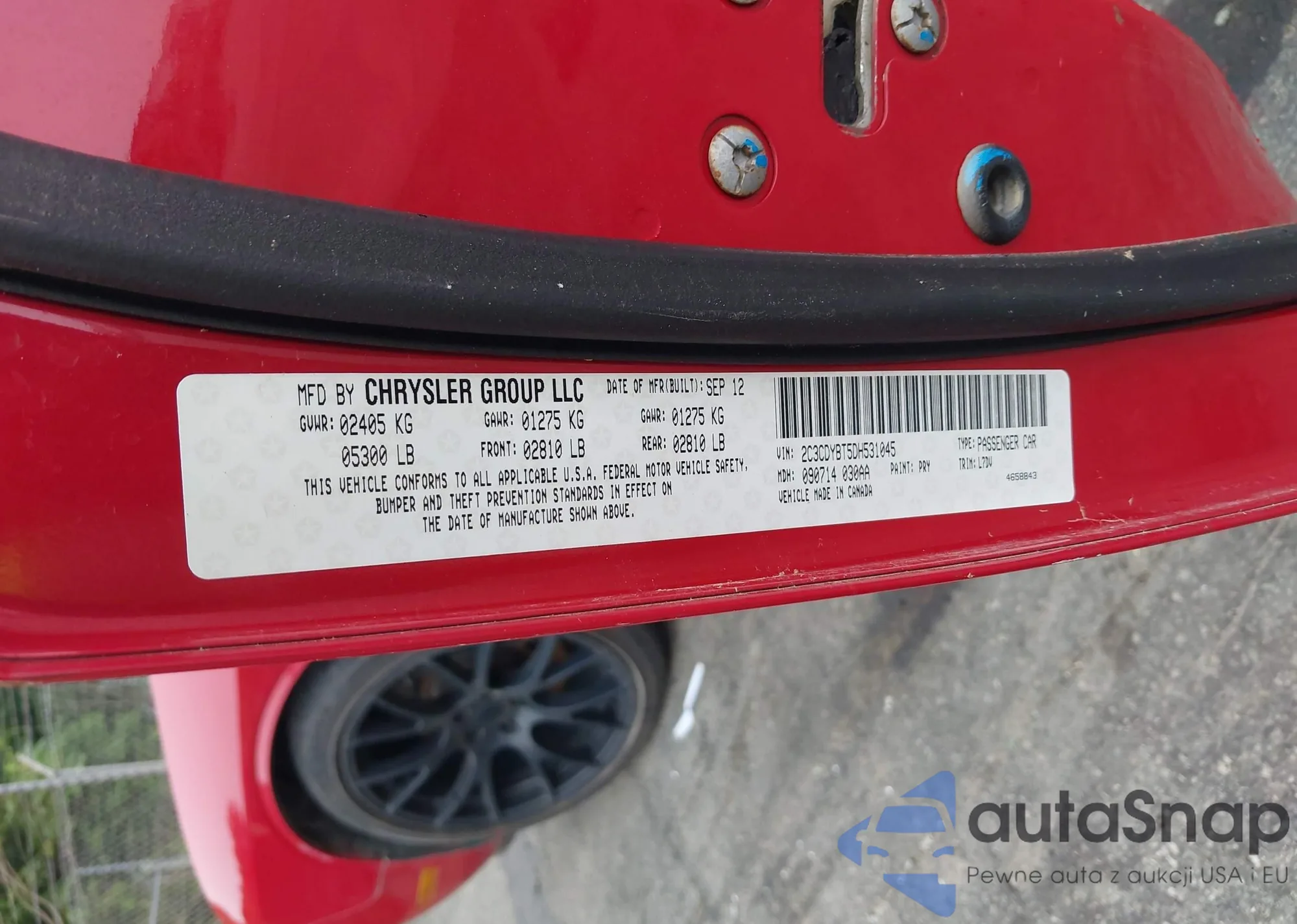 LOT: 42714421 VIN: 2C3CDYBT5DH531045