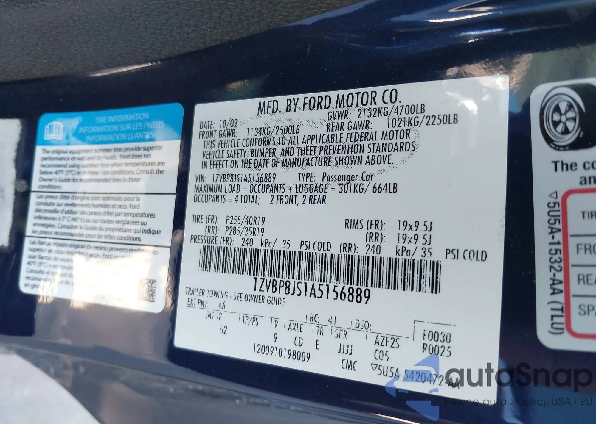 LOT: 43608733 VIN: 1ZVBP8JS1A5156889
