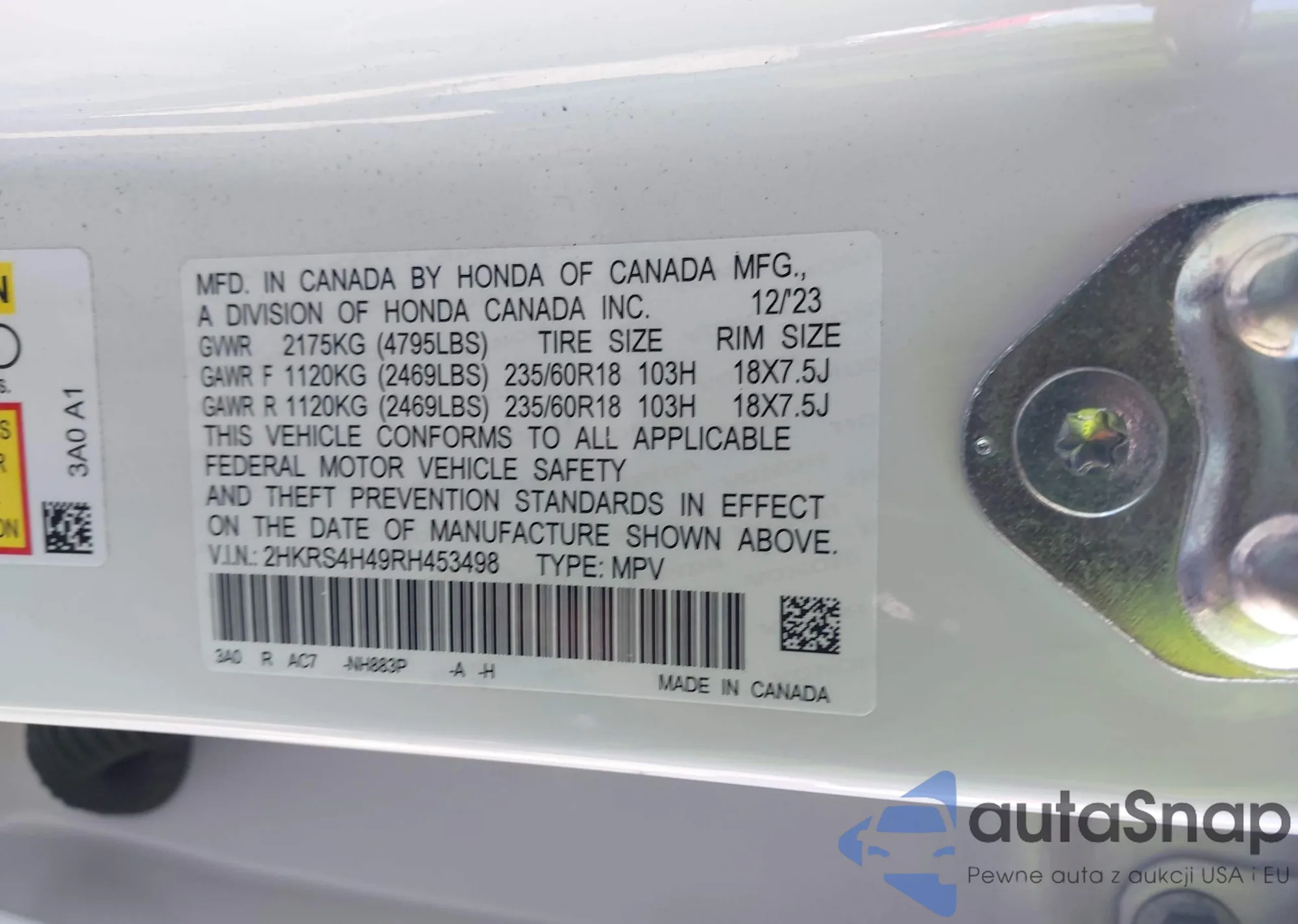 • VIN 2HKRS4H49RH453498