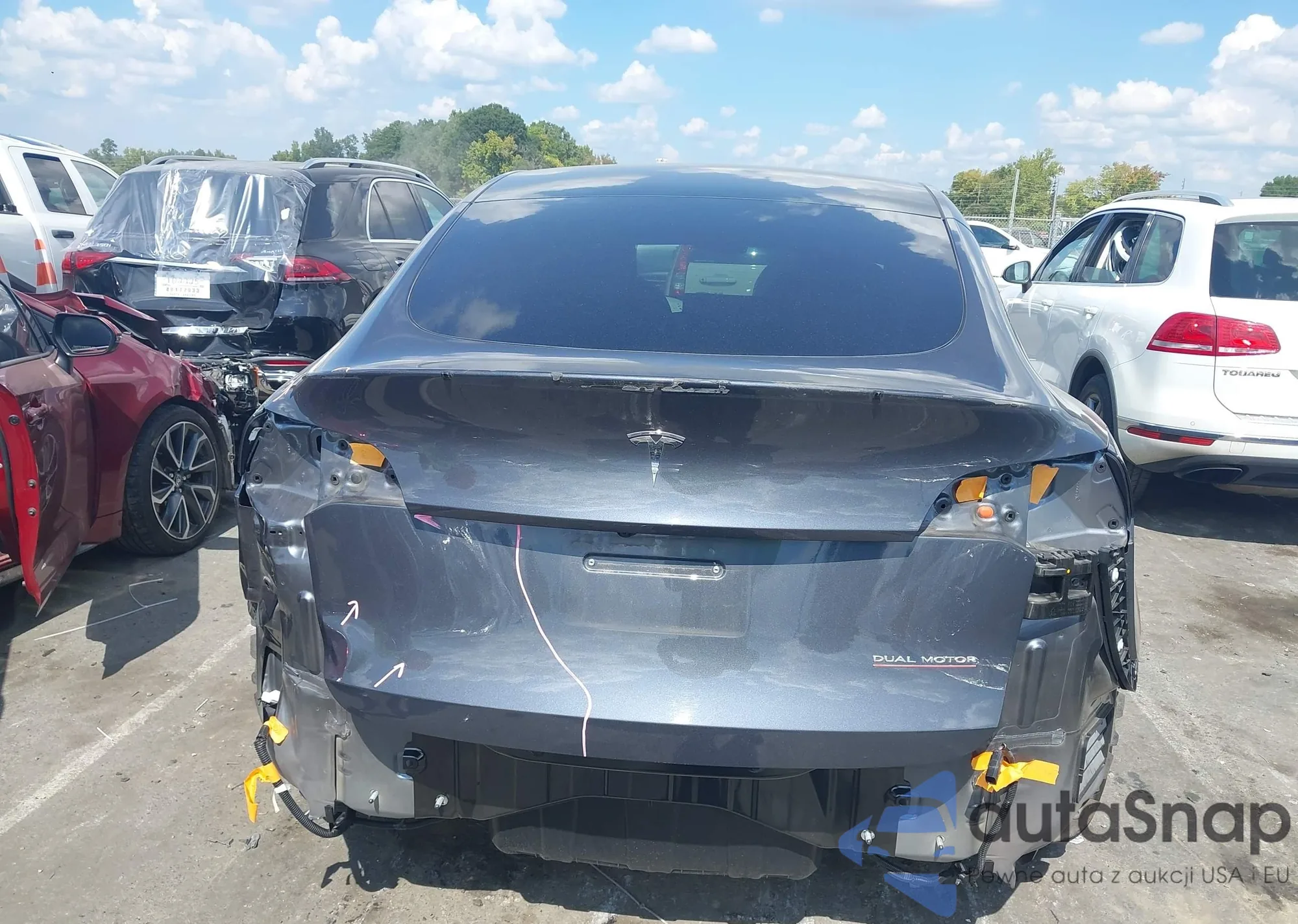 2021 Tesla Model Y Long Range Dual Motor All-Wheel Drive z USA, uszkodzony, nr VIN 5YJYGAEE0MF259460
