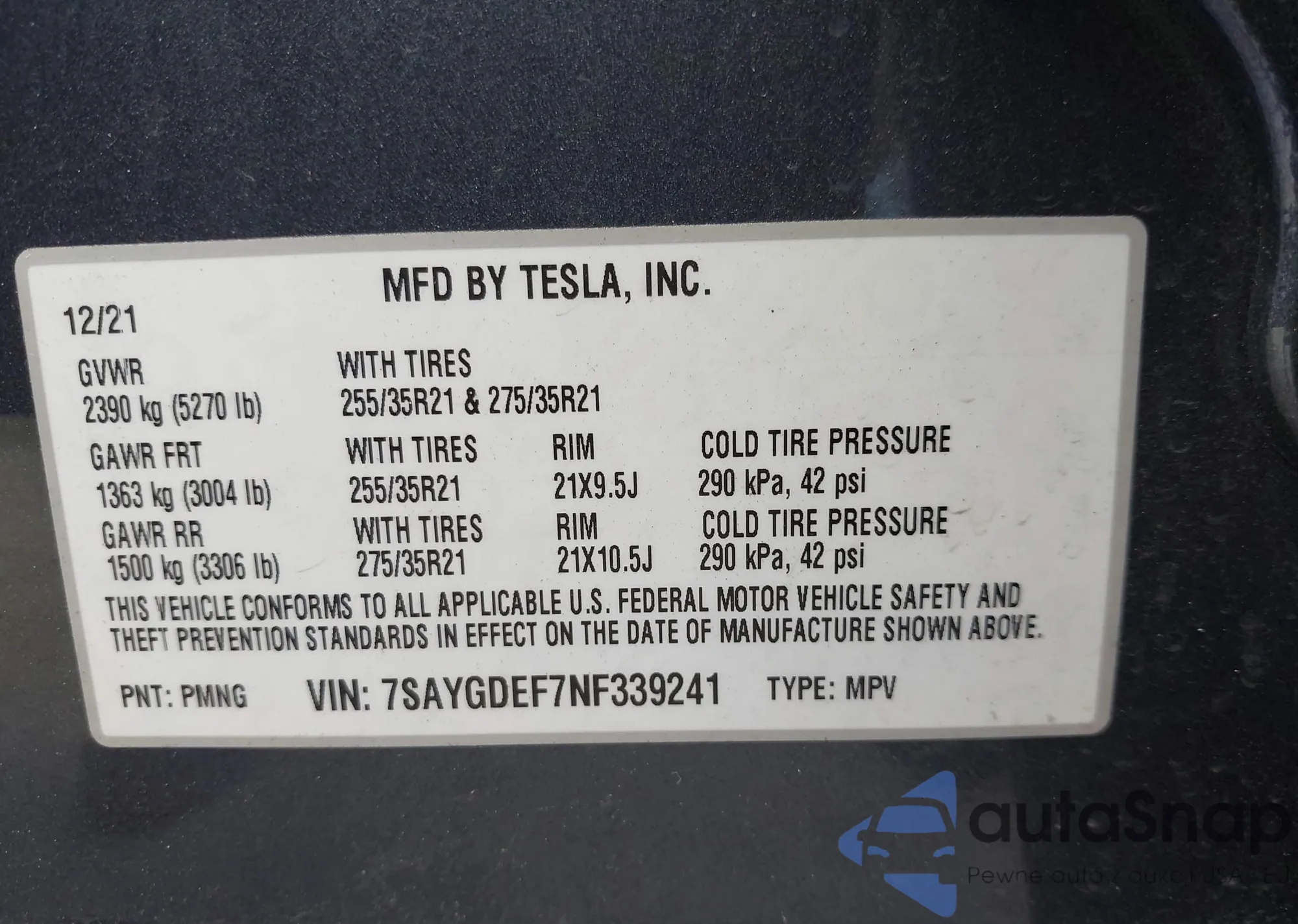 • VIN 5YJYGAEE0MF259460
