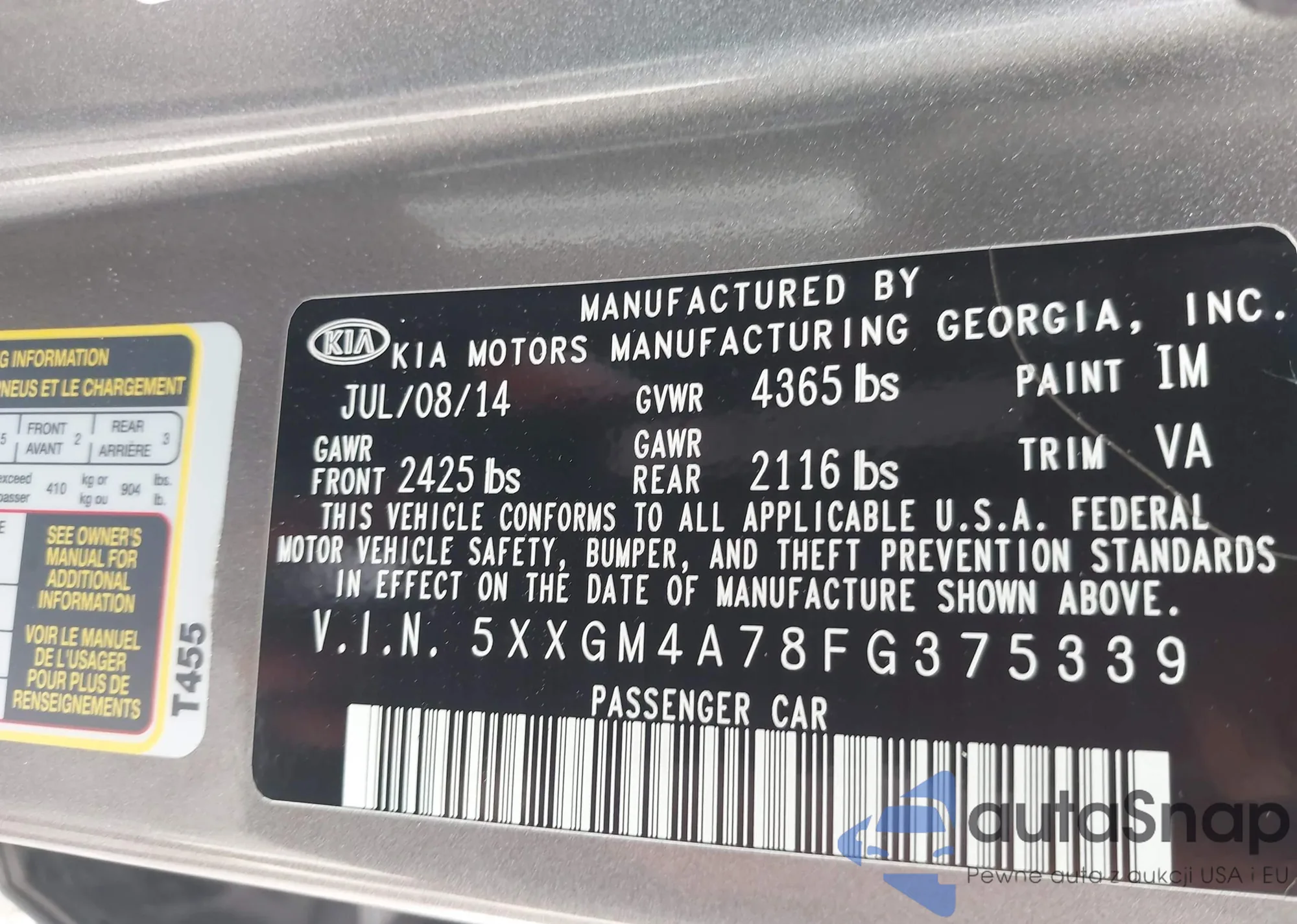• VIN 5XXGM4A78FG375339