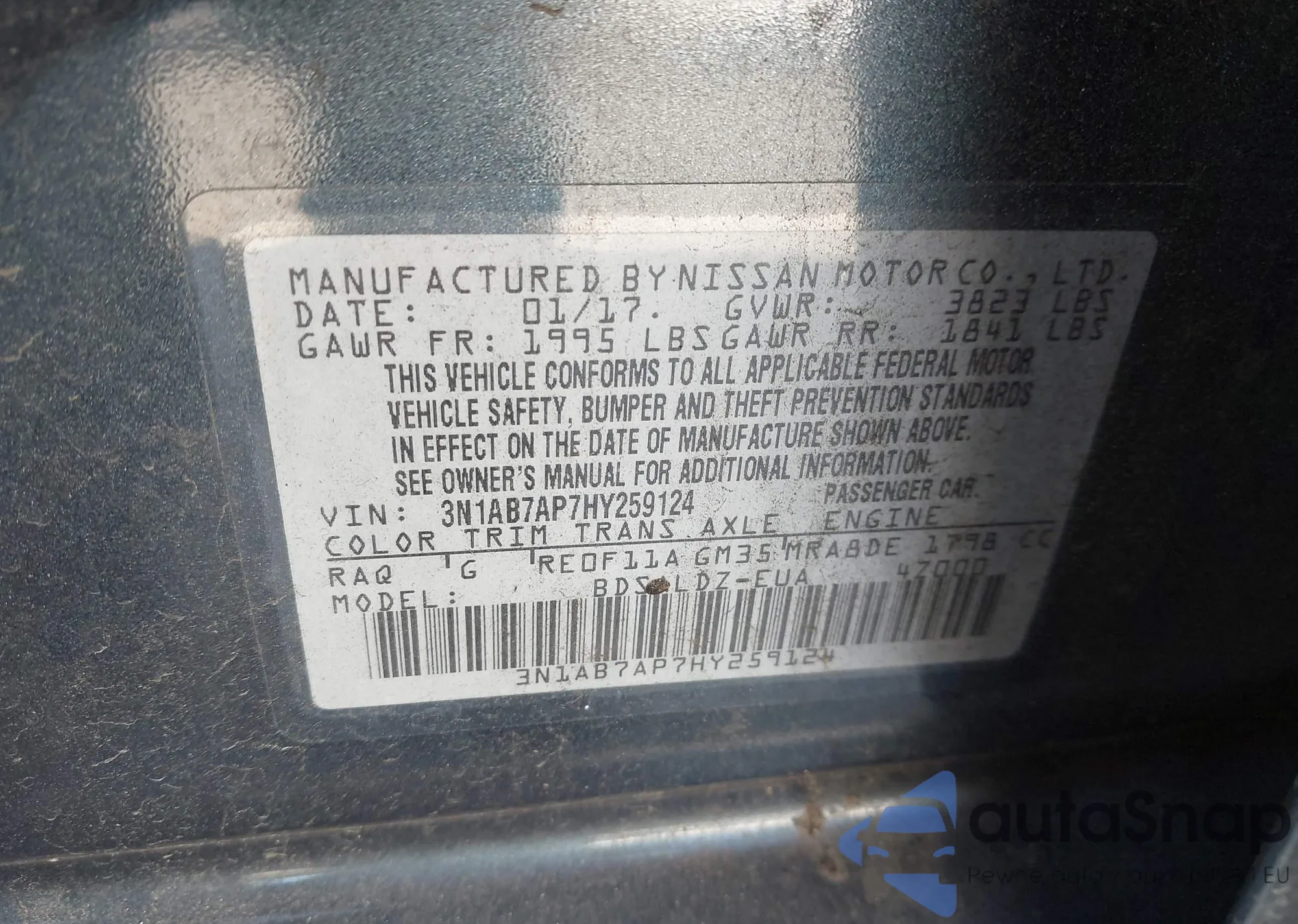 • VIN 3N1AB7AP7HY259124
