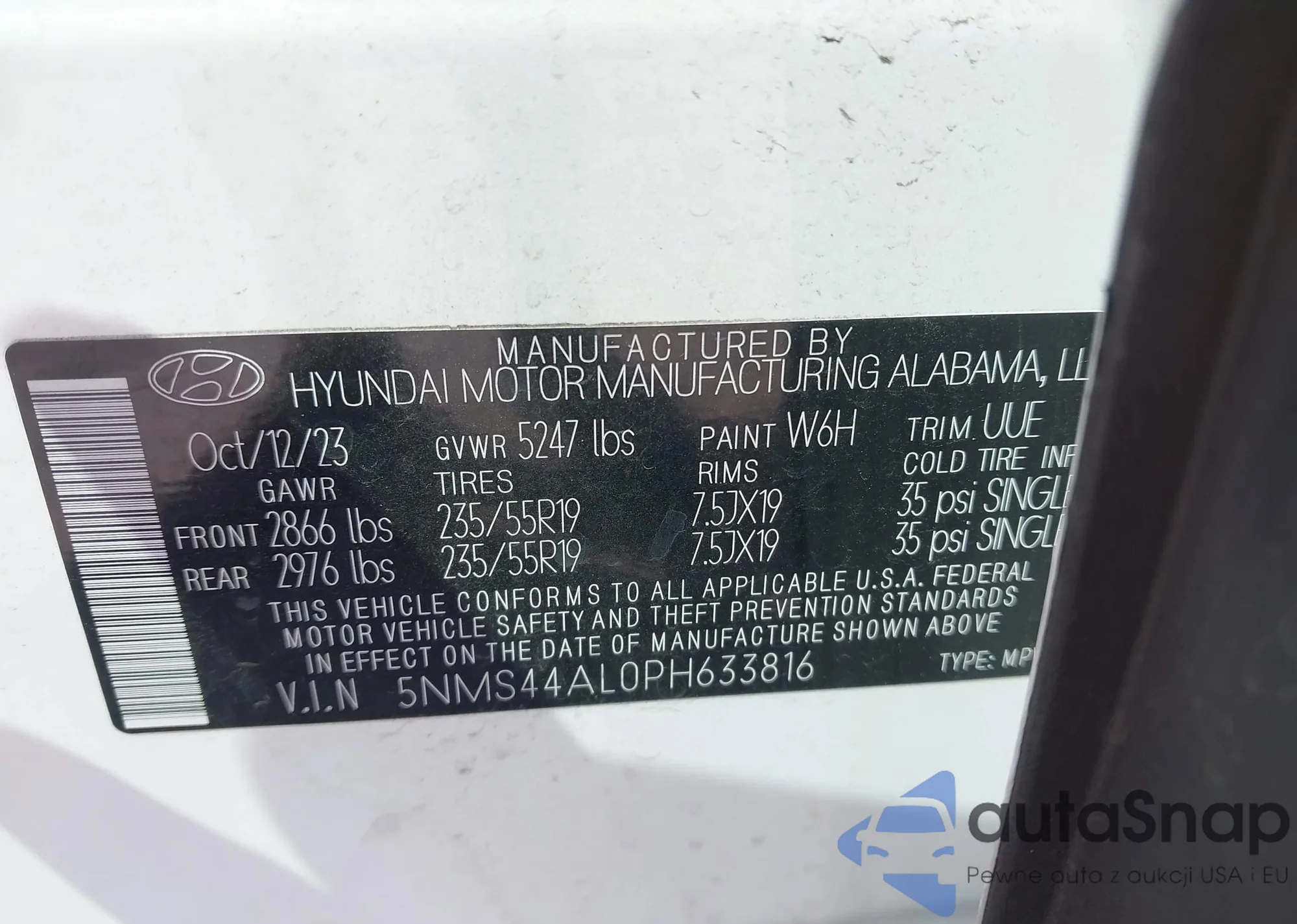 • VIN 5NMS44AL0PH633816