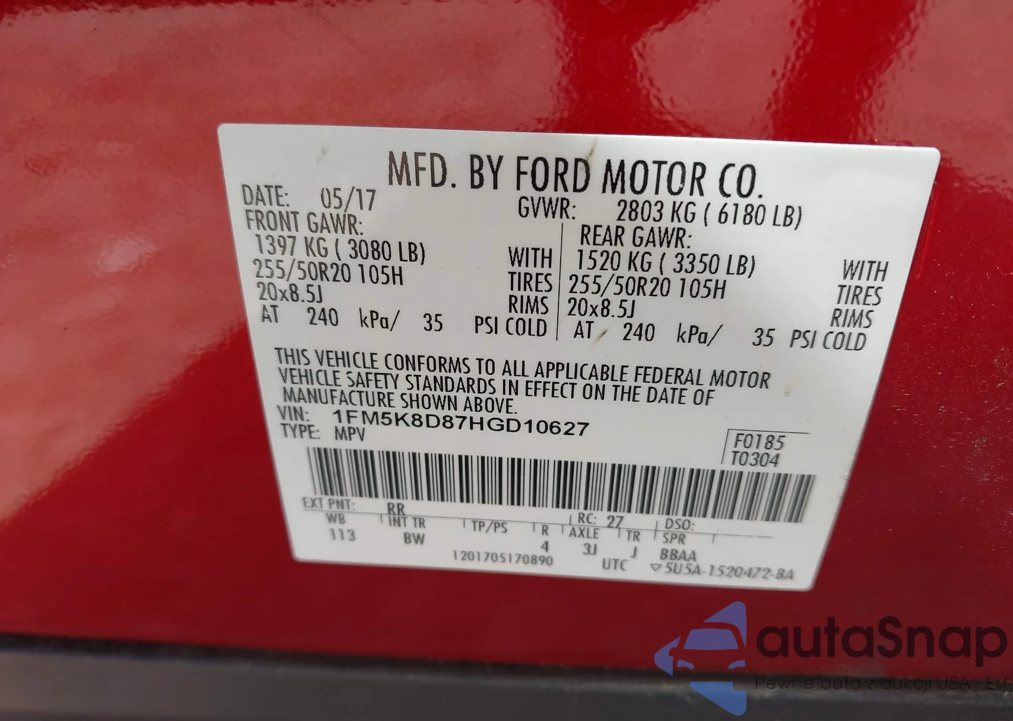 • VIN 5YJ3E1EB3MF052082