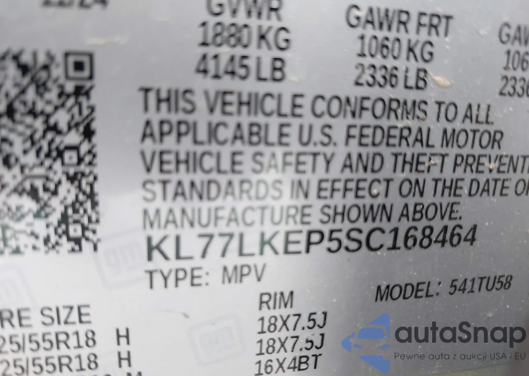 • VIN KL77LKEP5SC168464