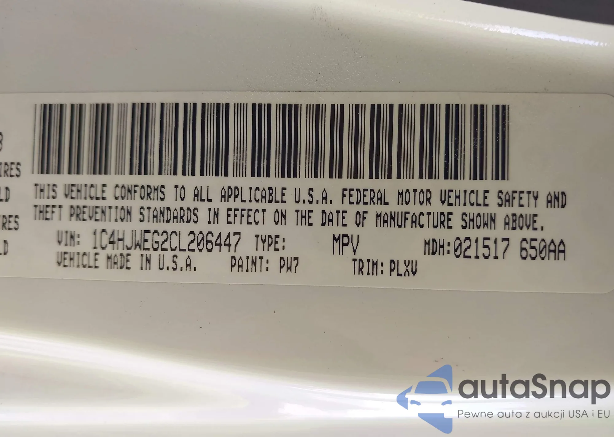 • VIN 1C4HJWEG2CL206447