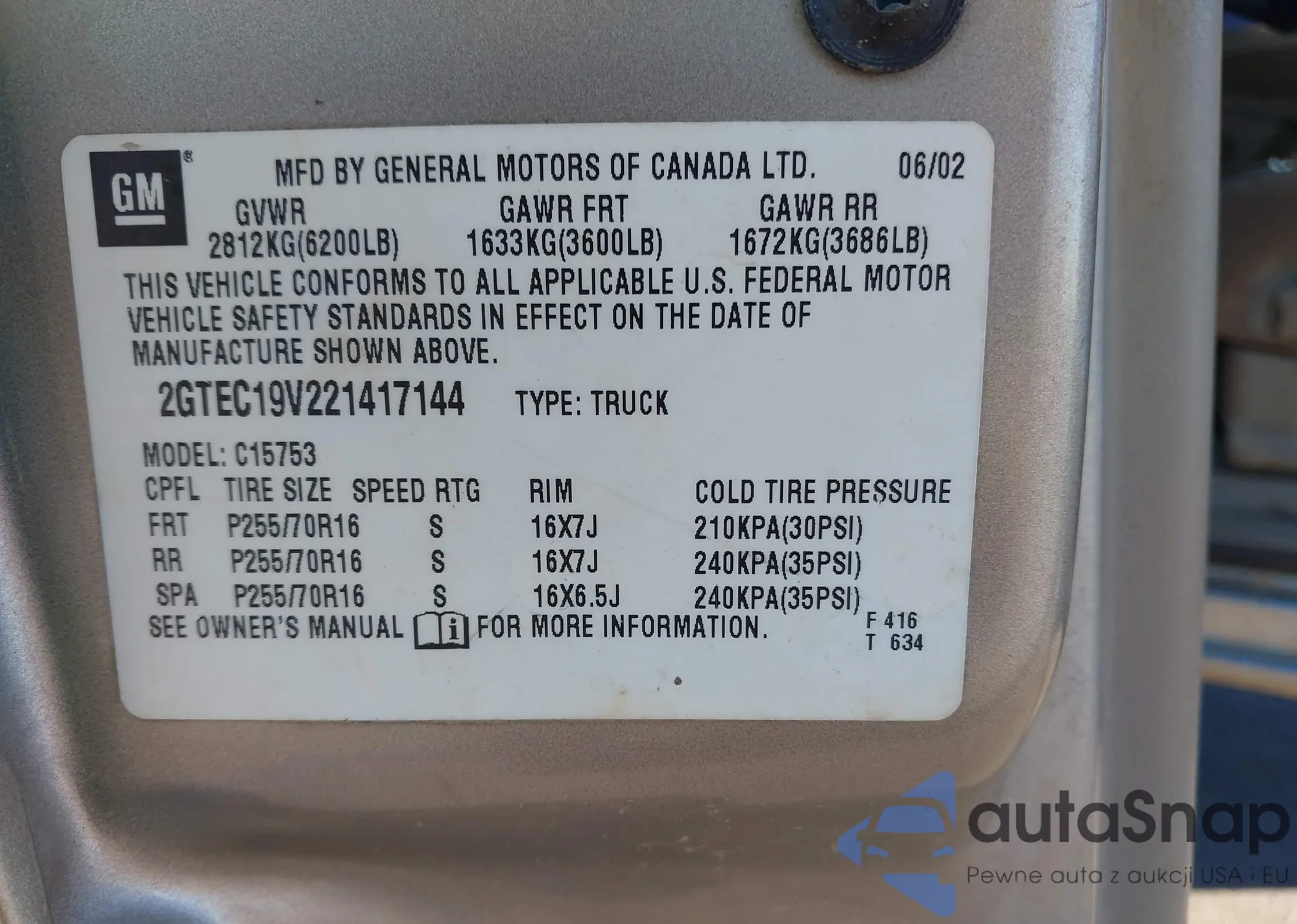 • VIN 2GTEC19V221417144