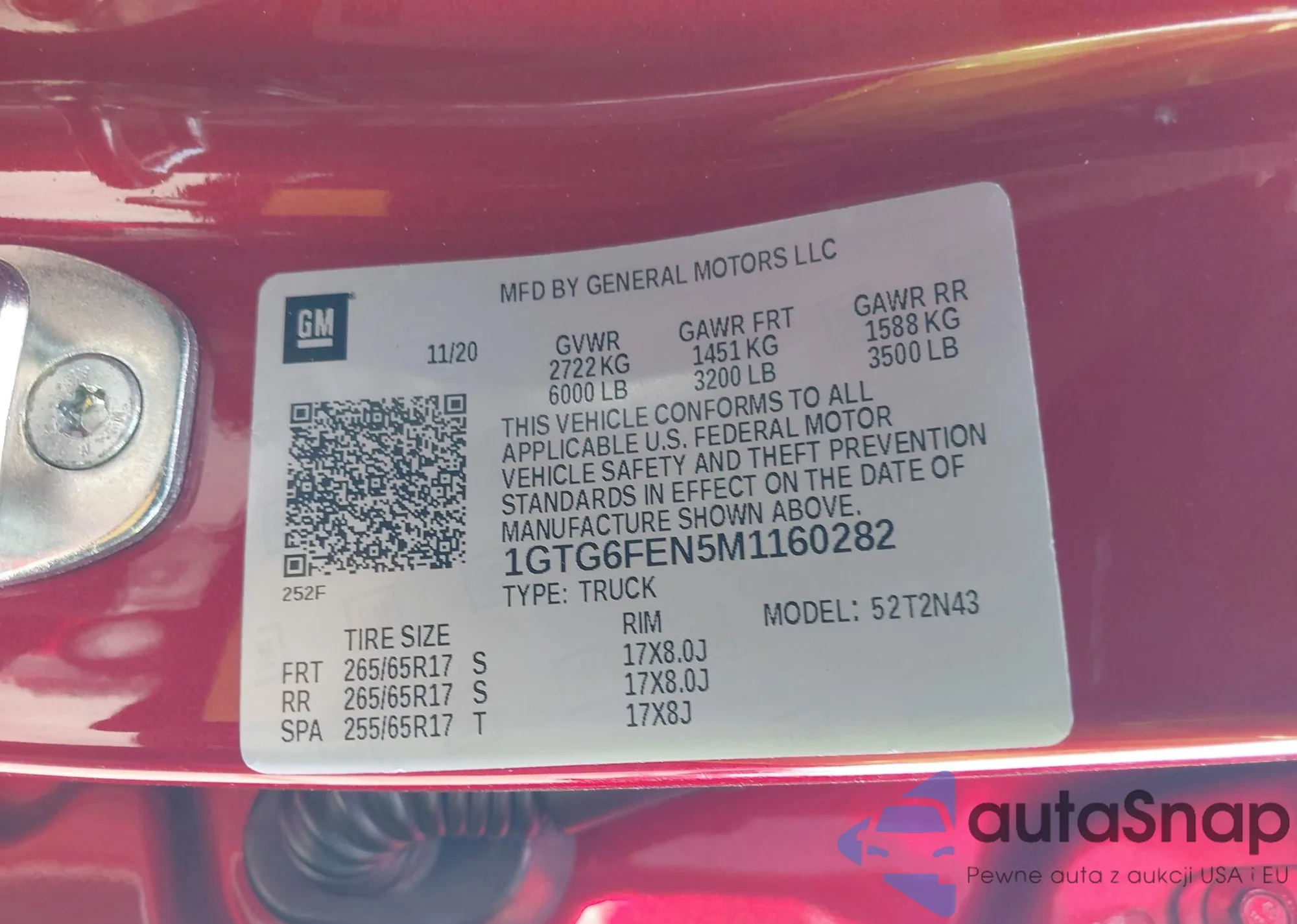 LOT: 42967155 VIN: 1GTG6FEN5M1160282