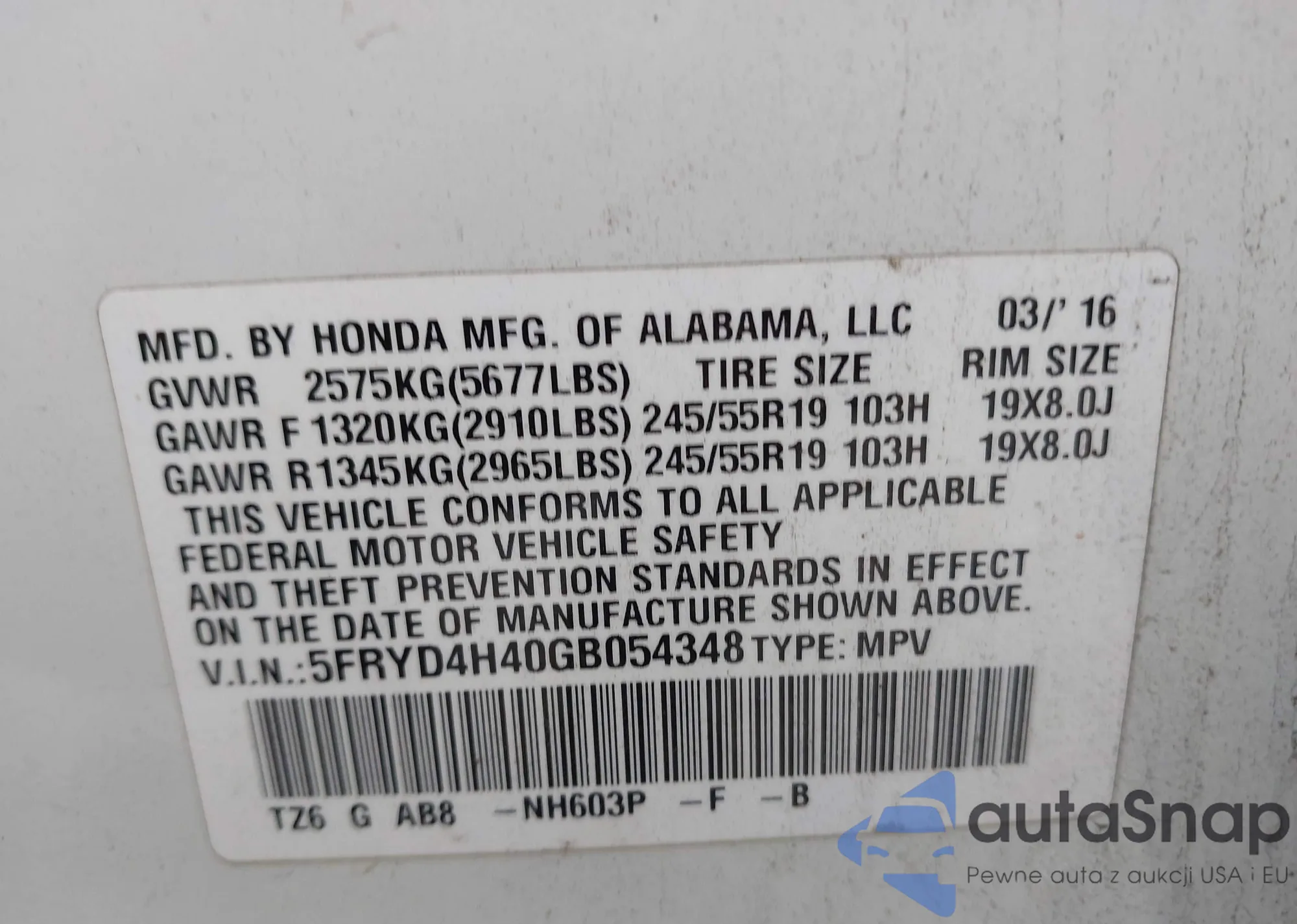 LOT: 42943133 VIN: 2CKDL33F686054103