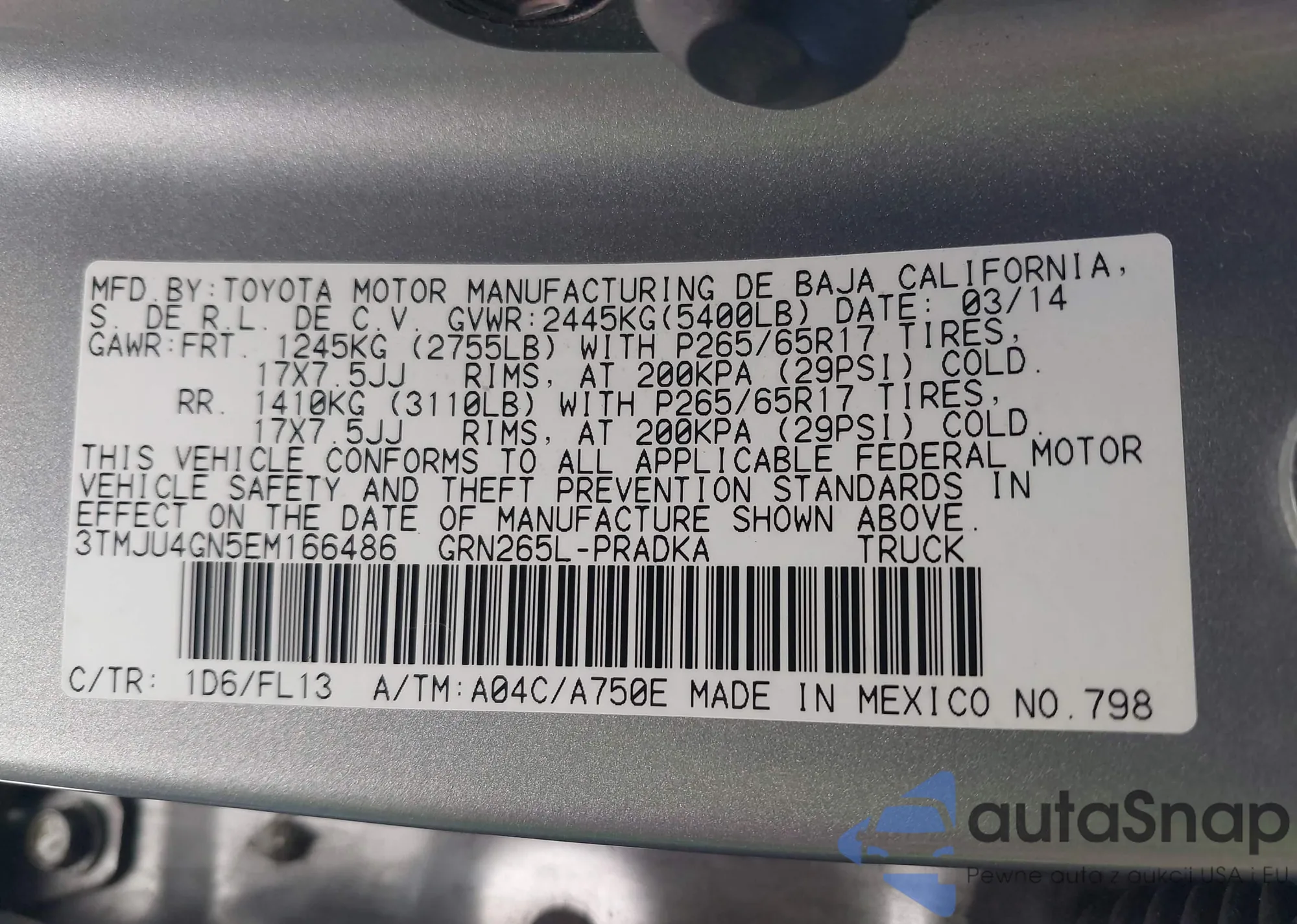 • VIN 3TMJU4GN5EM166486