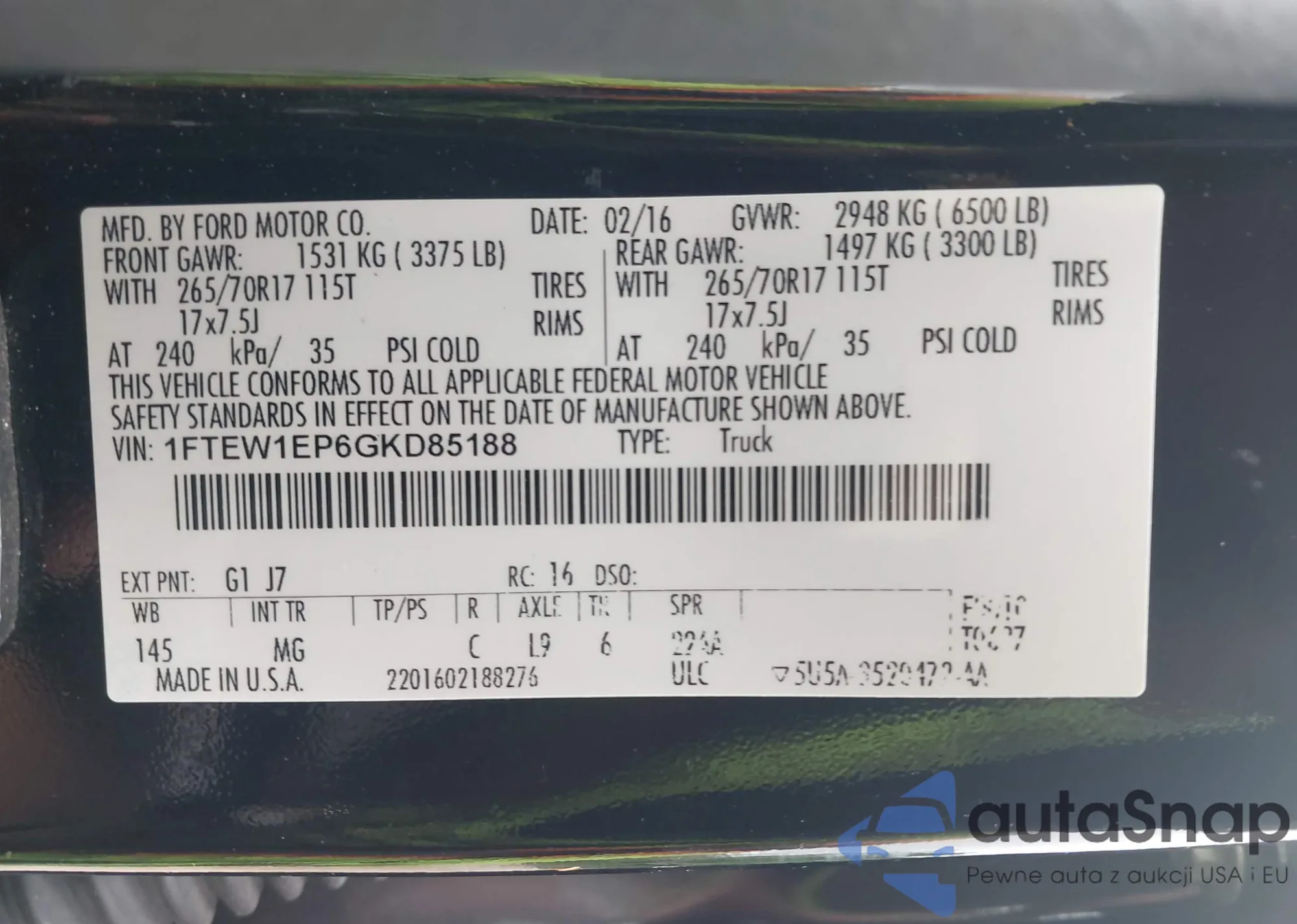 • VIN 1FTEW1EP6GKD85188