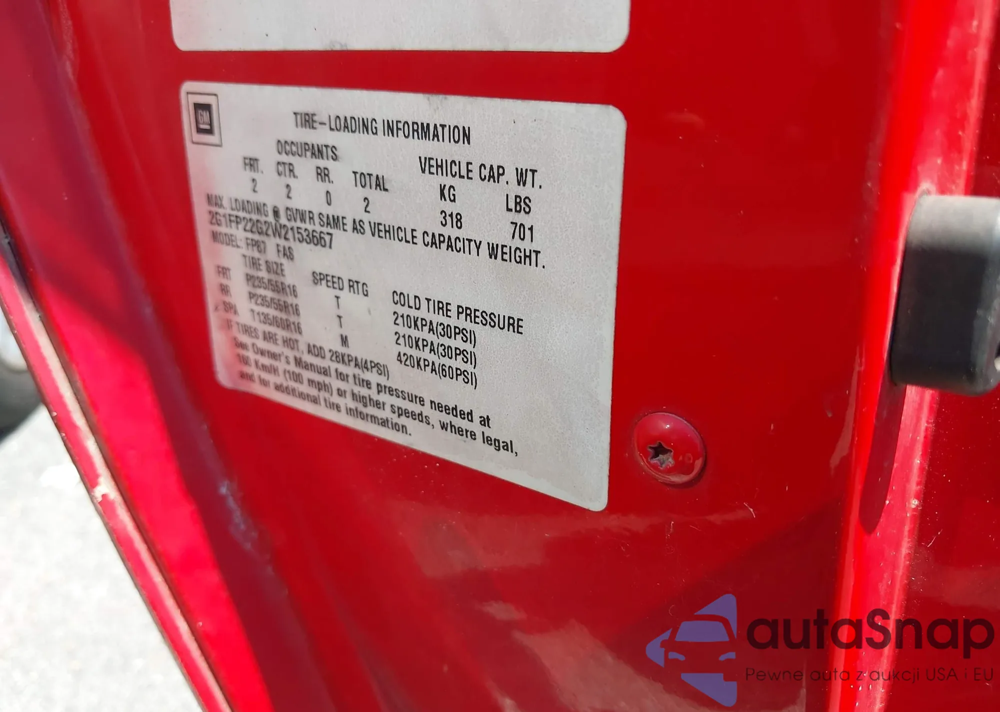 • VIN 2G1FP22G2W2153667