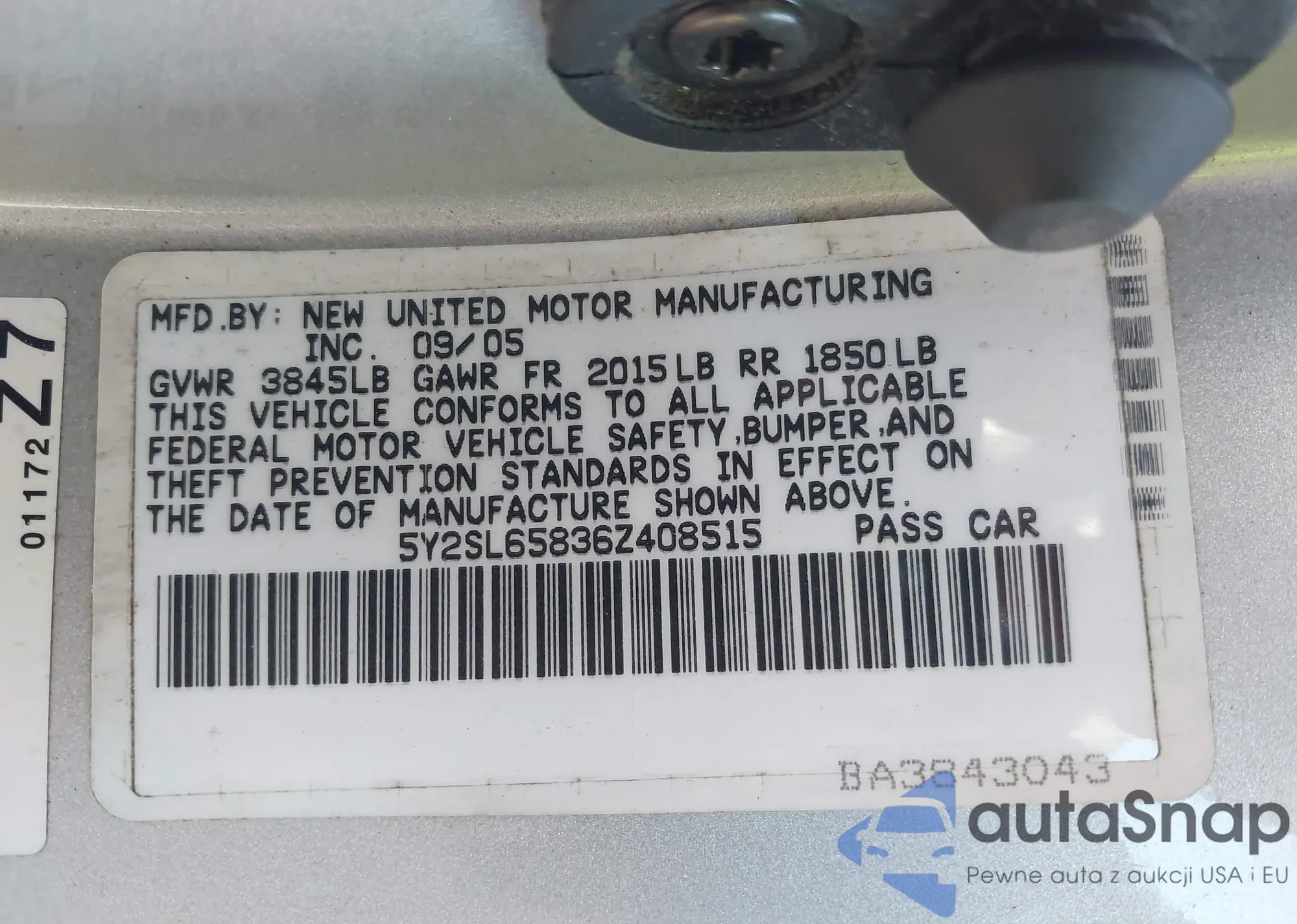 • VIN 5Y2SL65836Z408515