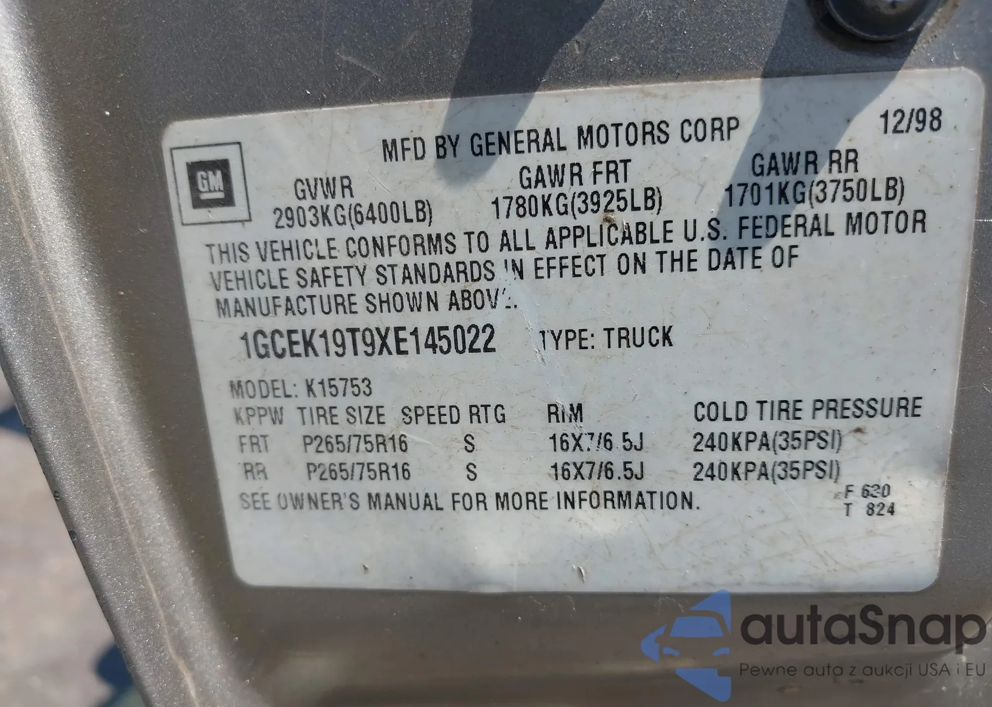 • VIN 1GCEK19T9XE145022