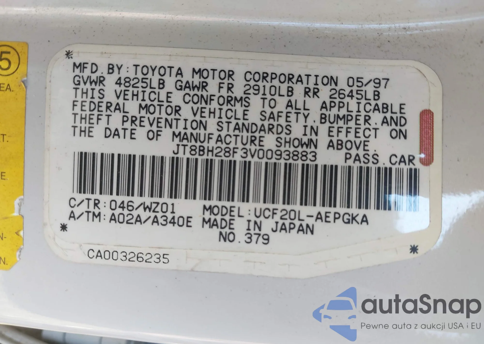 LOT: 43204976 VIN: JT8BH28F3V0093883