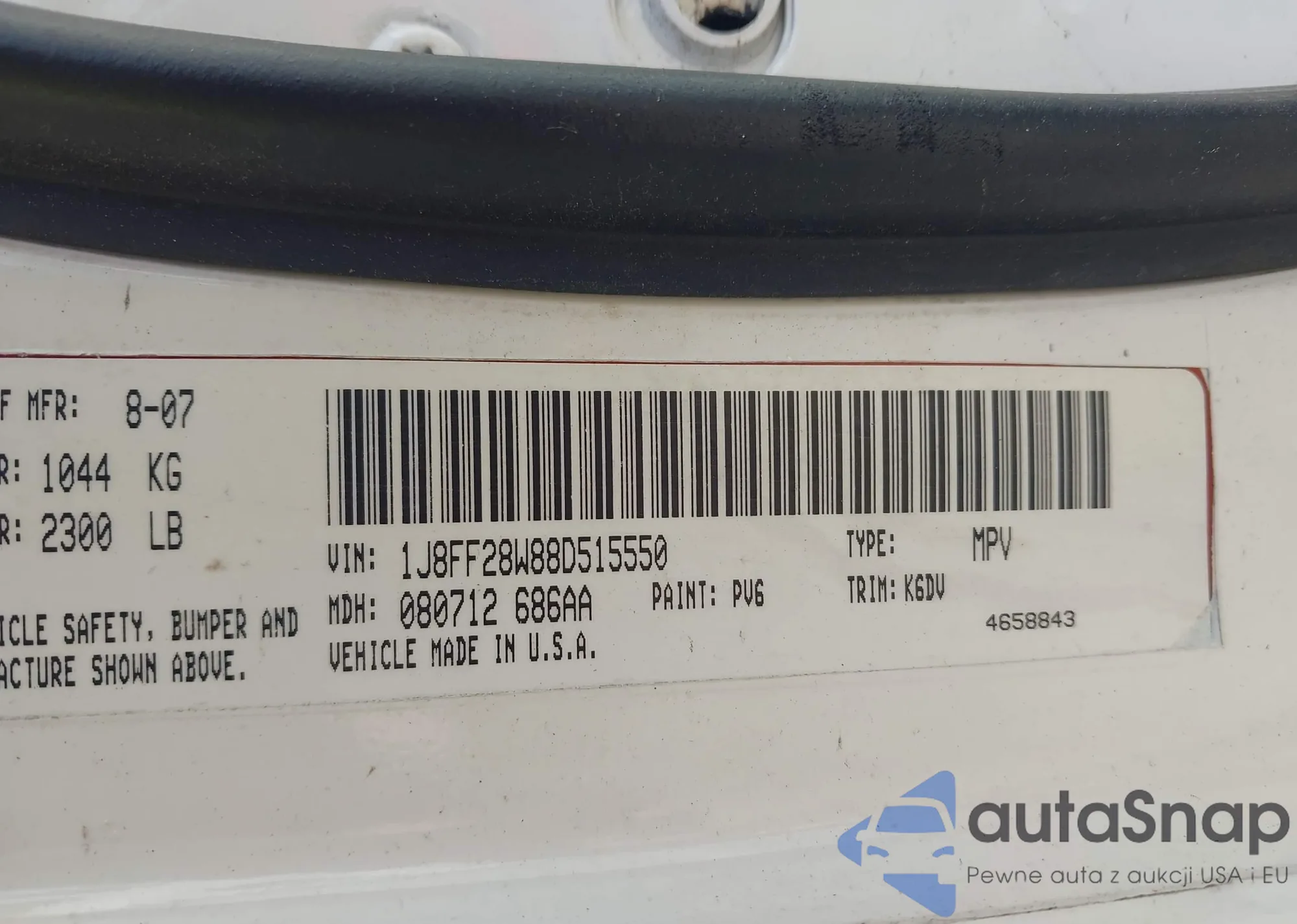 • VIN 1J8FF28W88D515550