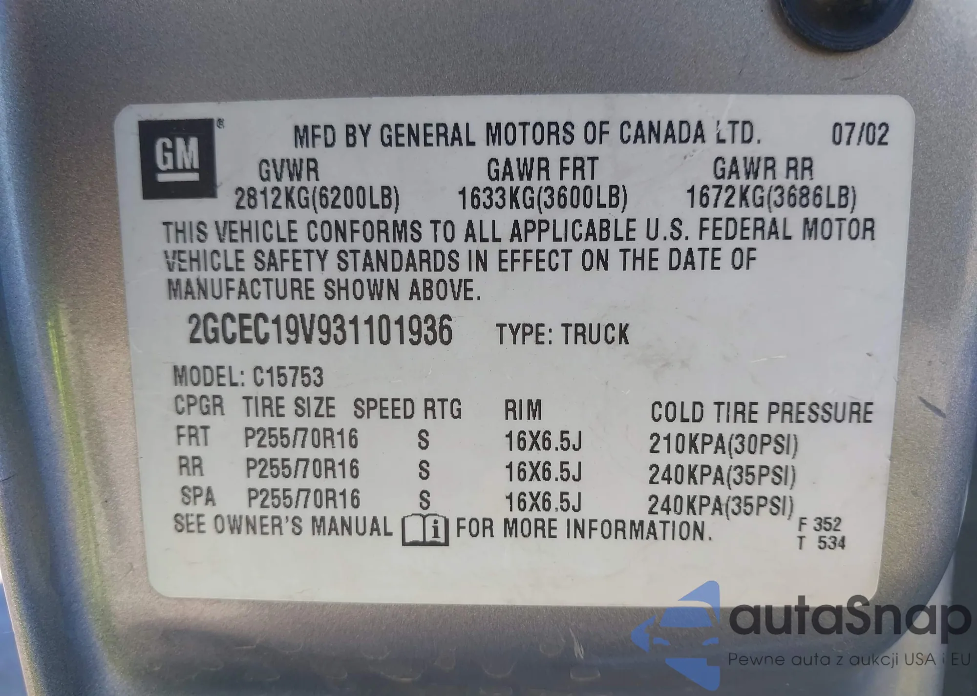 • VIN 2GCEC19V931101936