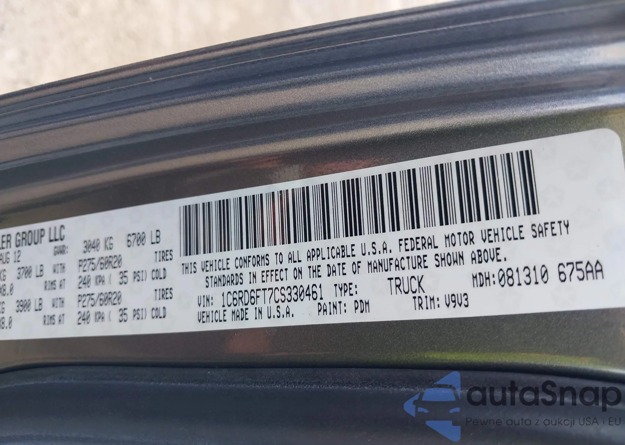 • VIN 1C6RD6FT7CS330461