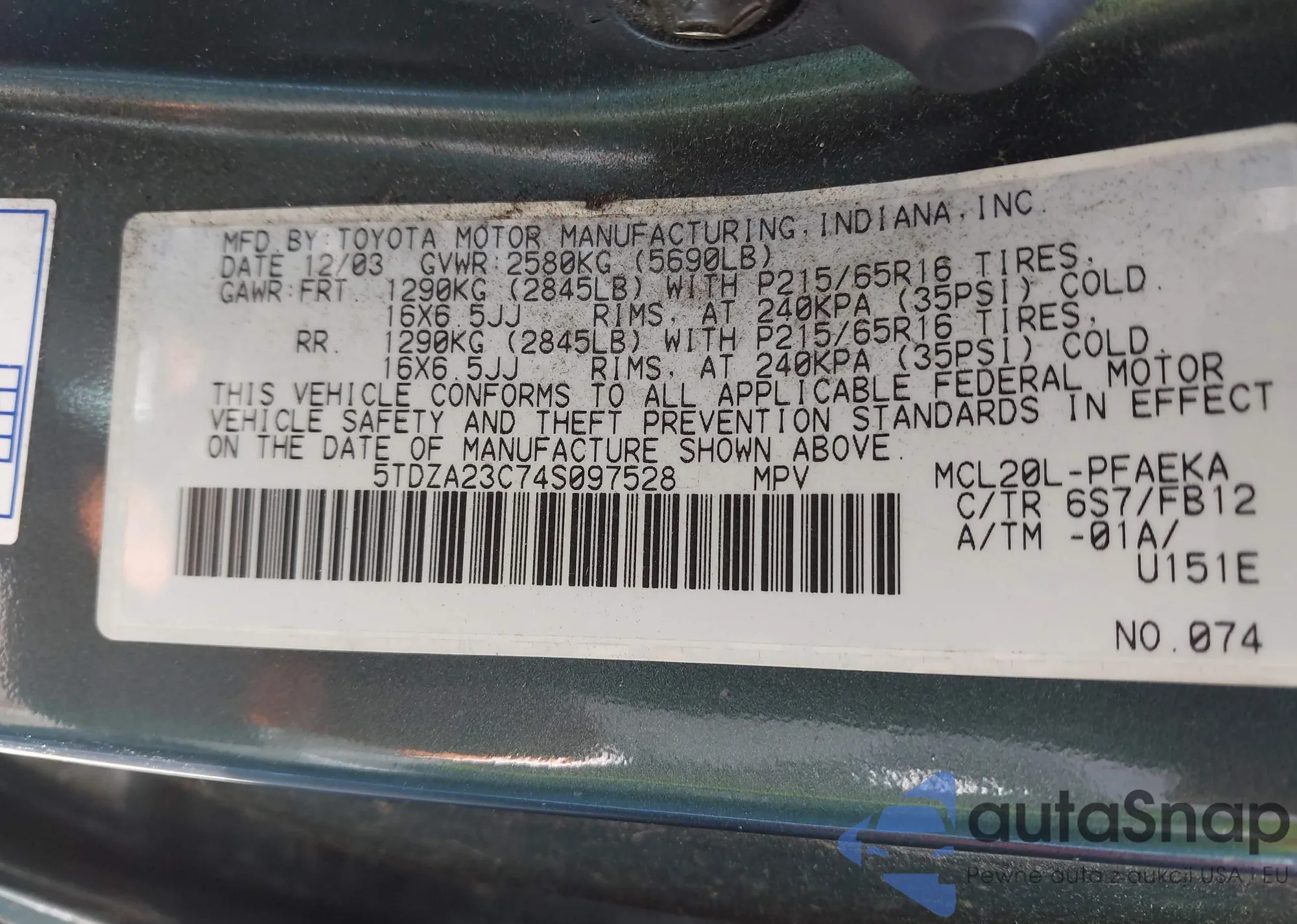 • VIN JTHCL5EFXD5017779