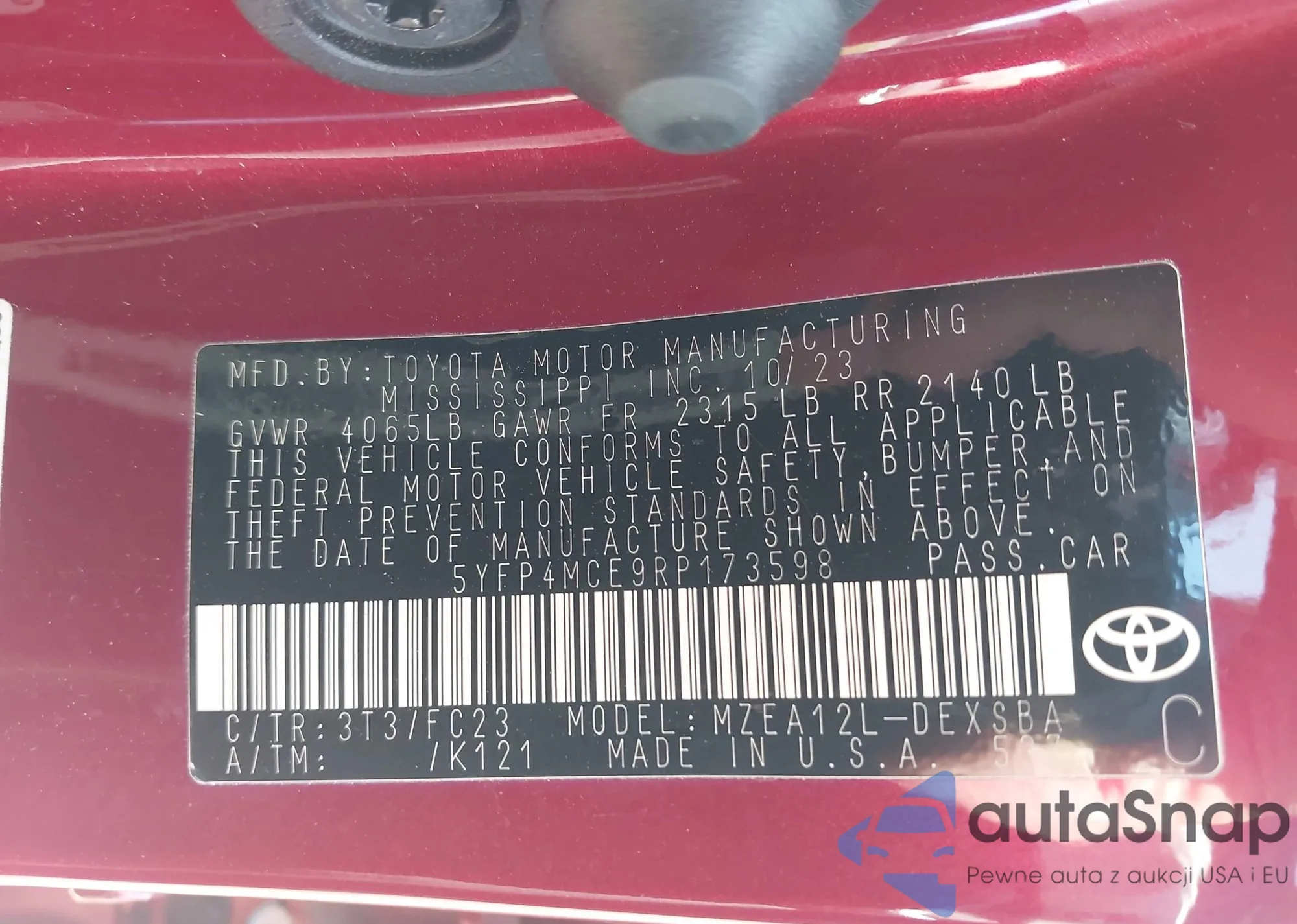 • VIN 5YFP4MCE9RP173598
