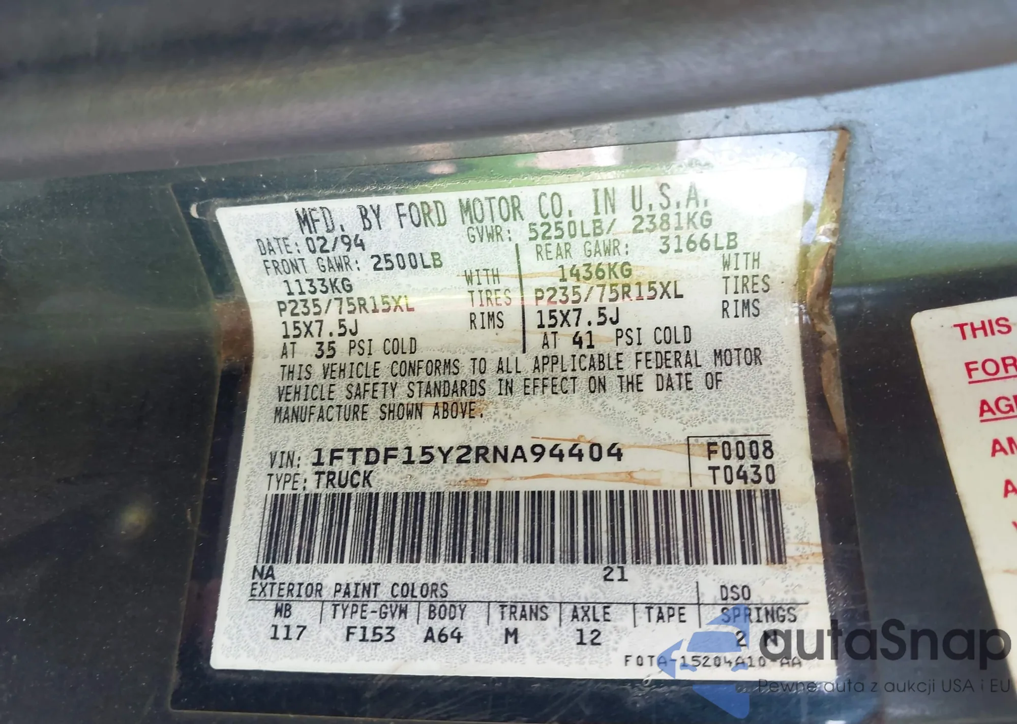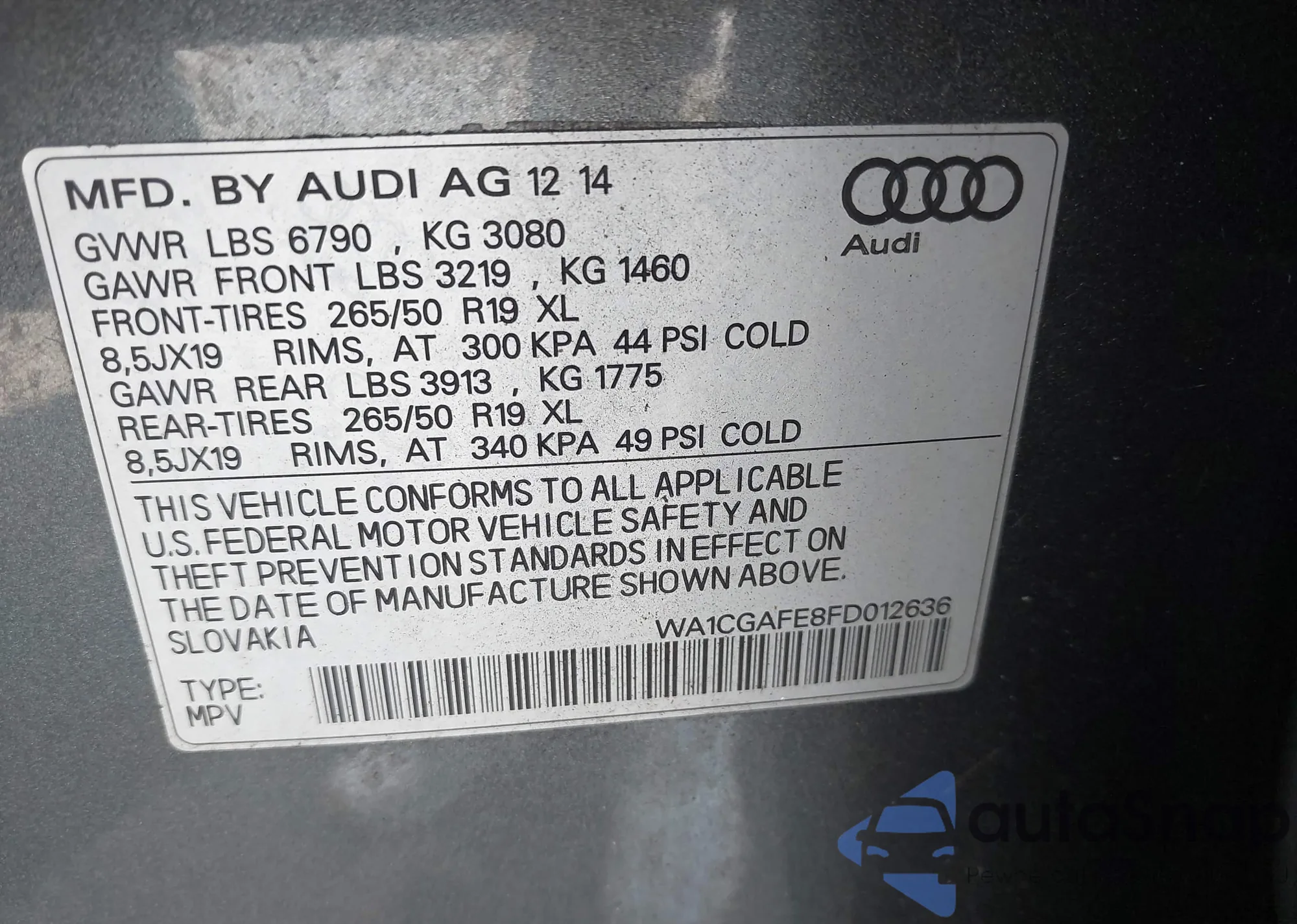 LOT: 43502132 VIN: WA1CGAFE8FD012636