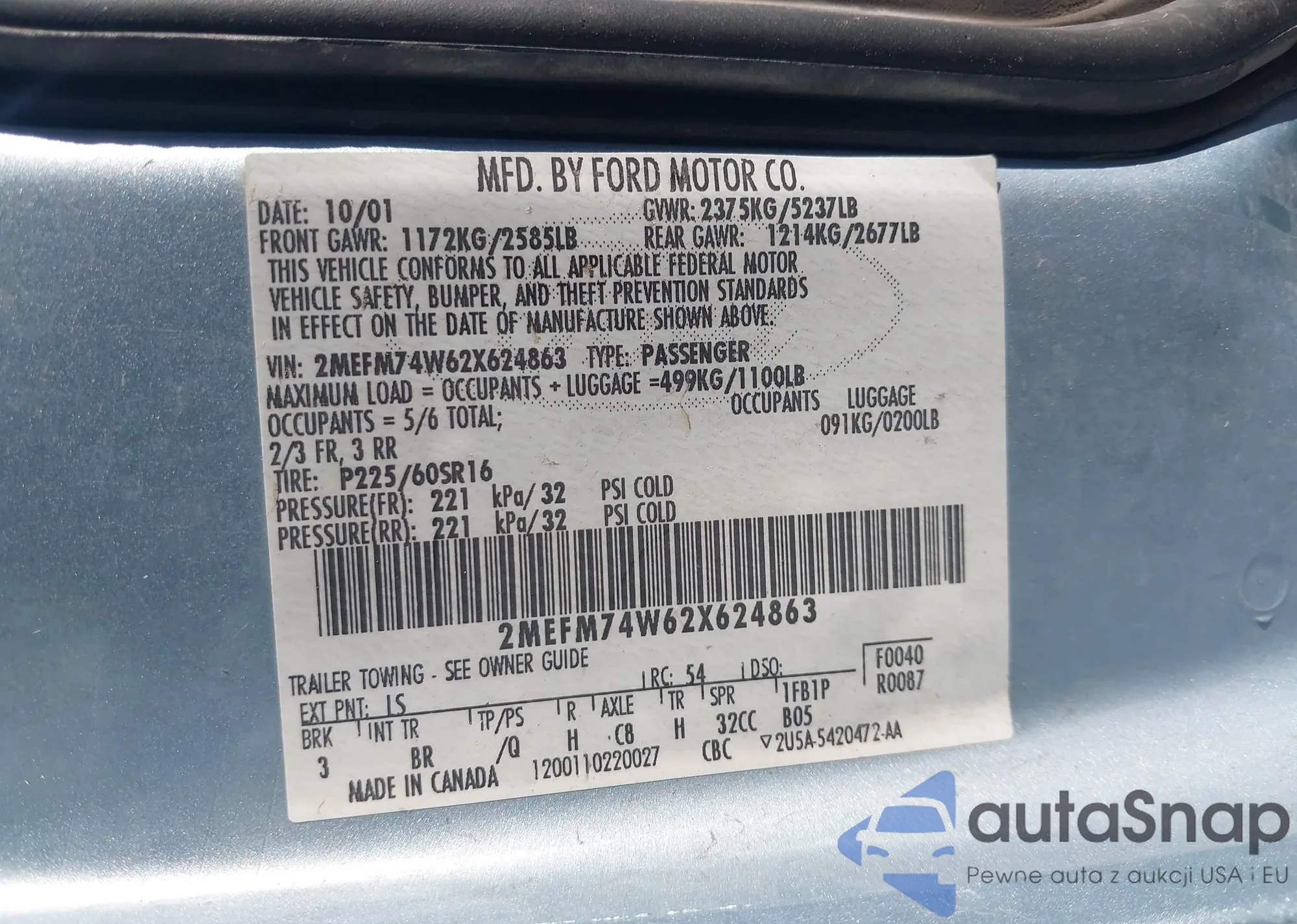 LOT: 43428926 VIN: 2MEFM74W62X624863