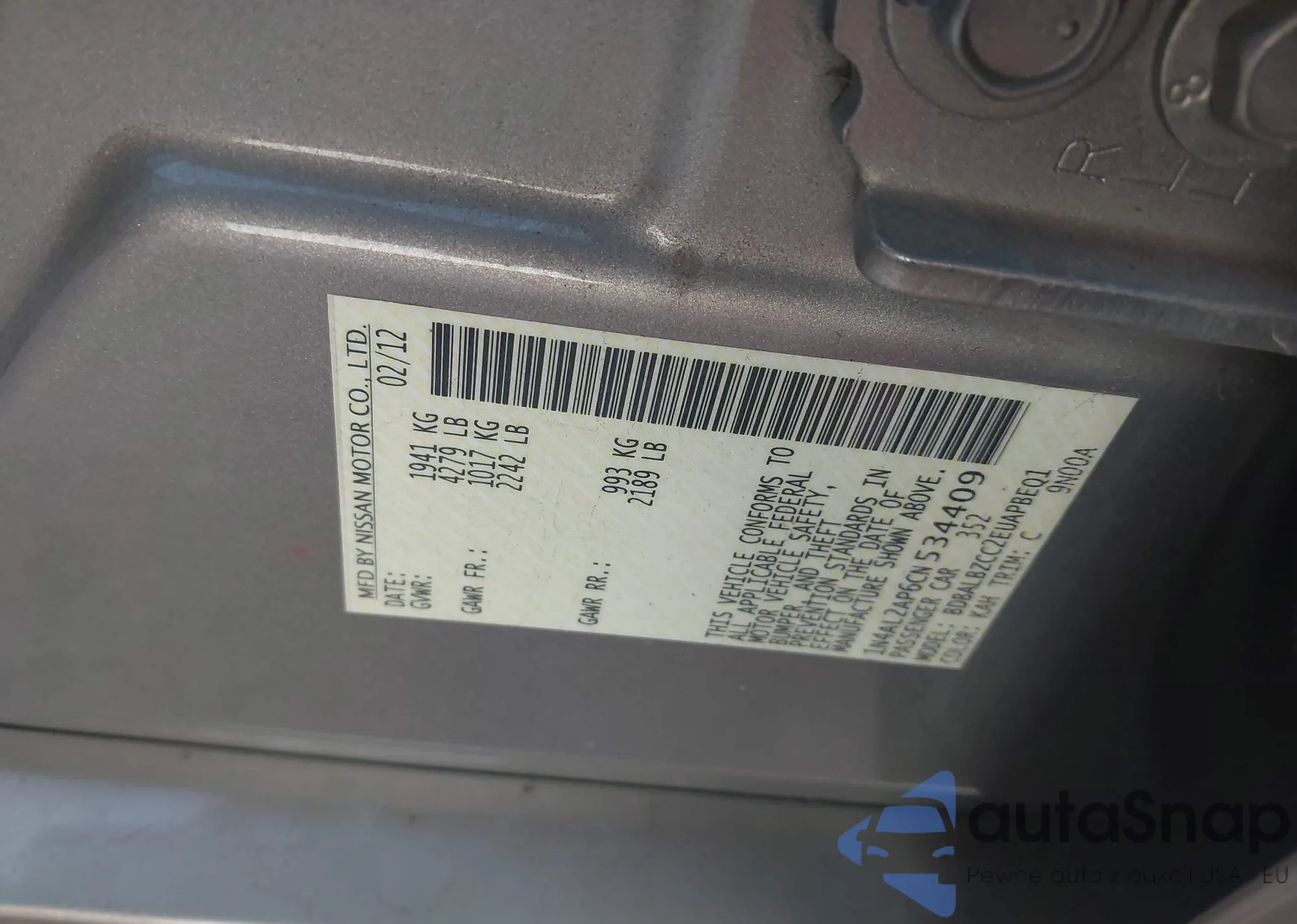 LOT: 42952947 VIN: 1N4AL2AP6CN534409